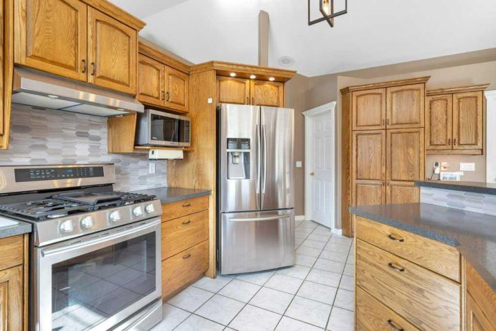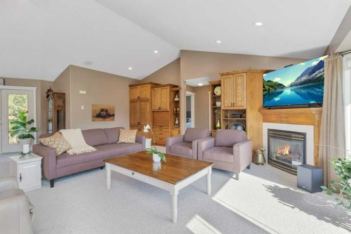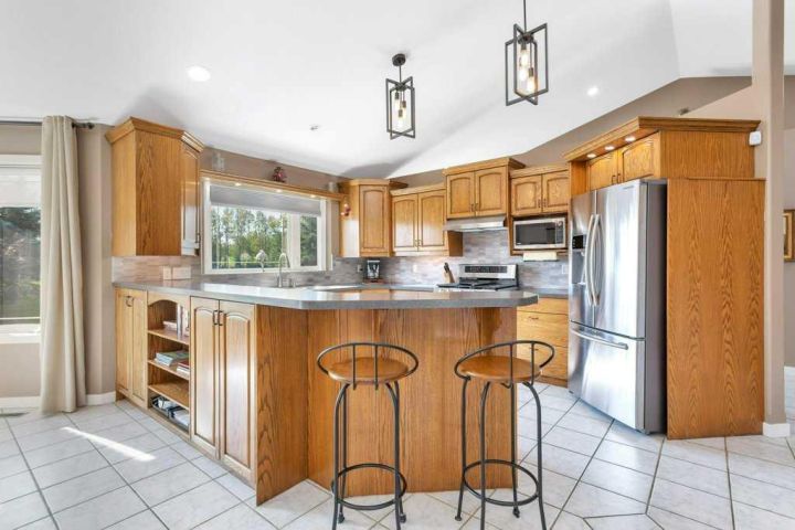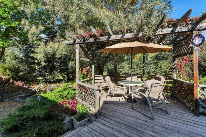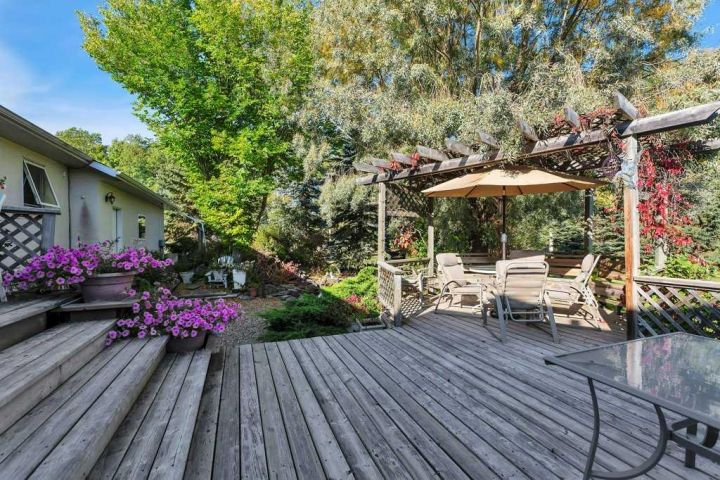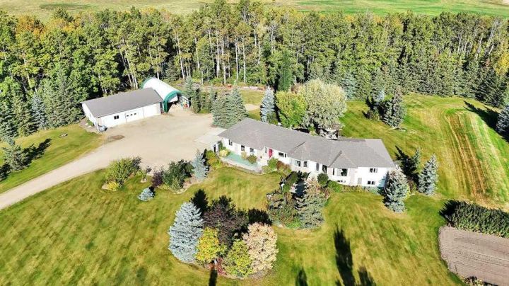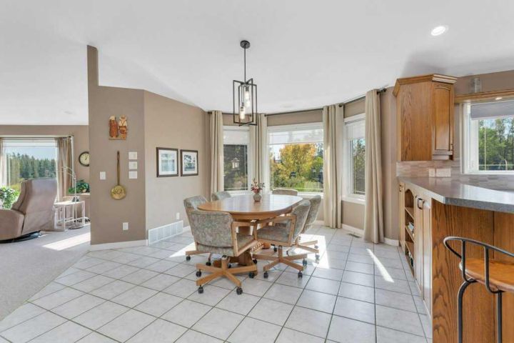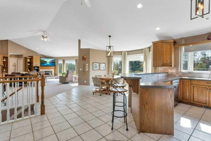 This stunning 8.62-acre property offers the best of both worlds—peaceful country living with the convenience of being only 5 minutes west of Rimbey. The 1,945 sq. ft. bungalow is designed with both comfort and practicality in mind, featuring an open and bright main floor accented by elegant built-ins, new custom window shades, and a cozy gas fireplace. The kitchen, with an abundance of counter tops, gas stove, and large walk-in pantry, which seamlessly flows into the dining area, making it ideal for family gatherings or entertaining. The main level offers two spacious bedrooms, two bathrooms, and thoughtful extras like a large laundry and mudroom. The fully developed basement adds two more bedrooms, a bathroom, a generous rec room, and ample storage options including a cold room and utility space. Heated by an efficient boiler system providing both in-floor and forced-air comfort, this home ensures warmth without the need for a traditional furnace. Outdoors, the property continues to impress. An oversized heated double garage (32’ x 31’) and a massive 32’ x 48’ heated shop with radiant heating provide incredible space for projects, hobbies, or equipment. For added convenience, a 22’ x 40’ tarp RV cover building offers excellent storage for your recreational vehicles. The backyard is private which includes an inviting pond with a trickling water fall —perfect for relaxation or outdoor living. Practical updates include a drilled well, a septic tank and new septic mound (2024), and a durable stucco exterior. With its perfect blend of modern comfort, functionality, and country charm, this acreage is a rare find.If you’re looking for a private retreat that’s close to town but offers all the benefits of country living, this property is one you don’t want to miss.