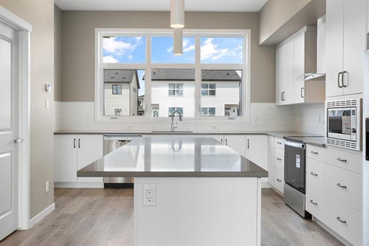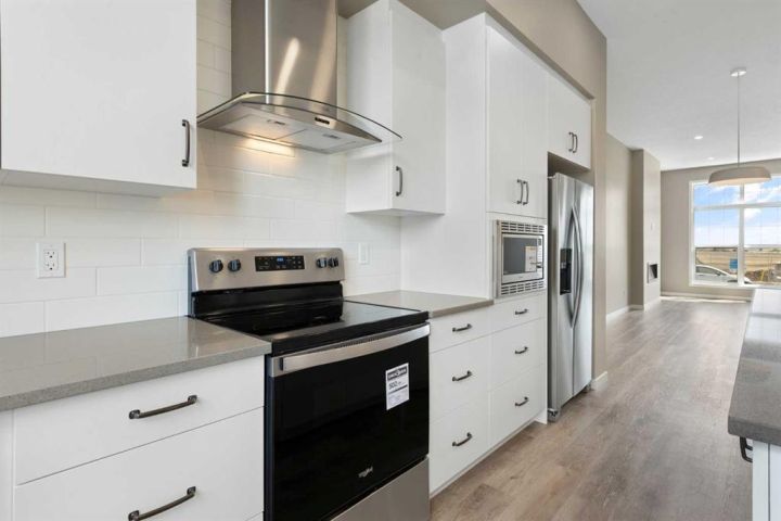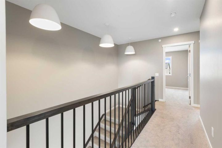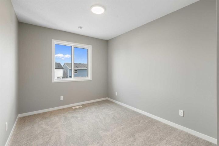 Welcome to this brand-new “Lyall” floor plan, a beautifully crafted home that blends modern style with functional design. From the moment you step inside, you’re greeted by soaring 10’ ceilings and warm luxury vinyl plank flooring that flows throughout the main level. At the front, a versatile flex room offers the perfect space for a home office, reading nook, or play area. Moving toward the back, the open-concept living space unfolds with a bright and inviting living room, complete with an elegant electric fireplace, an oversized dining area ideal for family gatherings, and a stunning kitchen that serves as the heart of the home. The kitchen is a true showpiece, featuring timeless white cabinetry extended to the ceiling, quartz countertops, a hammered white subway tile backsplash that wraps around the sleek range hoodfan, stainless steel appliances, and a spacious island—perfect for both everyday meals and entertaining. Upstairs, a central loft provides a flexible second living space and creates separation between the primary suite and the additional bedrooms. The staircase is highlighted with modern black spindle railing, adding a contemporary touch to the home’s design. The spacious primary retreat includes a walk-in closet and a spa-inspired 5-piece ensuite with dual sinks. Two more bedrooms, a full 4-piece bathroom, and a convenient upper laundry room complete this level. The fully finished basement adds incredible value with two additional bedrooms, a large rec room, and a 4-piece bathroom. The basement is roughed in for a wet bar and has extra laundry—making it an ideal setup for multi generational living, or space for your older children. Located in the growing southeast community of Hotchkiss, this home offers more than just a beautiful interior. Residents here enjoy a family-friendly setting with scenic pathways, green spaces, and quick access to major routes like Stoney Trail and Deerfoot. You’re also just minutes away from the amenities of Seton, including restaurants, shopping, the South Health Campus, and recreation options. This is your opportunity to own a brand-new, move-in ready home in one of Calgary’s up-and-coming communities—complete with a finished basement and high-end upgrades that make it truly stand out.