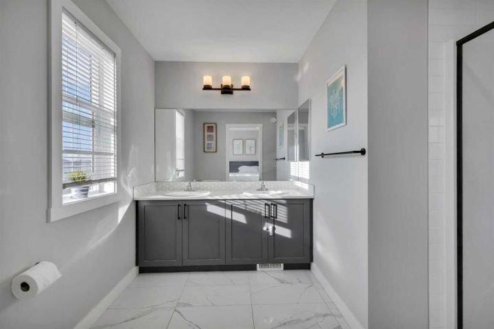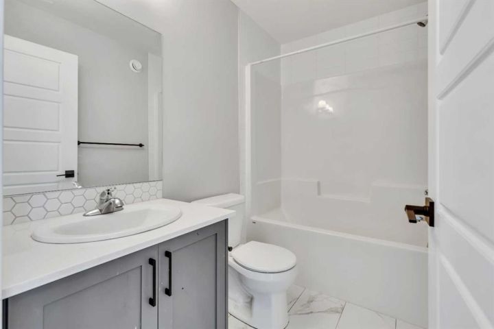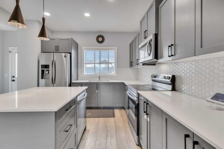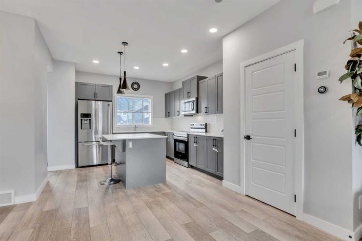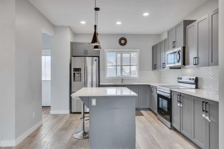 Introducing this MAGNIFICENT lane home located in the highly desirable community of Hillcrest in Airdrie. This exceptional property offers a spacious and well-appointed living space, perfect for those seeking comfort and convenience. The kitchen is a true centerpiece, featuring an island with QUARTZ COUNTERTOPS, ADDITIONAL KITCHEN LIGHTING, 42” UPPER CABINETS, a built in microwave, STAINLESS STEEL appliances, and plenty of pan drawers. Spanning over 1450 sq ft above grade and over 2,000 sq ft of developed living space; this home boasts an excellent open concept floor plan on the main floor, which includes a generous kitchen, island, a sizable living room, nook, and a conveniently located half bath. The upper floor features three spacious bedrooms and 2.5 baths, each offering ample space for relaxation and privacy—ideal for families or hosting guests. The primary bedroom is a true retreat, complete with a HUGE WALK-IN CLOSET and EN-SUITE bathroom for your convenience. Step into the backyard and discover a tranquil oasis meticulously designed for relaxation and entertainment. The charming front porch is perfect for your evening unwind, while the back deck provides an inviting space for summer barbecues or simply enjoying the outdoors. Parking will never be an issue with a dedicated DOUBLE CAR GARAGE, offering convenience and protection during the winter months and lots of street parking Situated in a desirable neighborhood, this home is close to a wide range of amenities, including SCHOOLS, PARKS, WALK PATH, SHOPPING CENTERS, making everyday errands and outings effortless. Take advantage of the nearby recreational opportunities and immerse yourself in this wonderful family-oriented community. Whether you're looking for a savvy investment or the perfect family home, this property is truly a rare find. The FULLY DEVELOPED ILLEGAL BASEMENT offers more potential for this versatile home. From short term AIRBNB rentals to Long term Rentals or just extra family space. Don't miss out on this fantastic