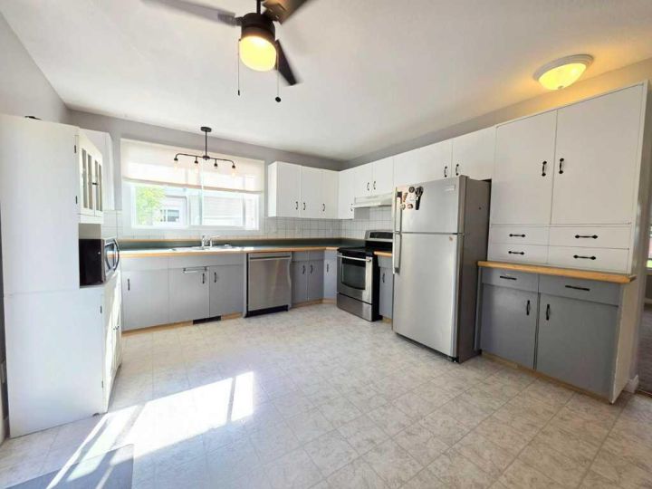 Welcome to this beautifully maintained bungalow located in a highly desirable, family-friendly neighbourhood—just steps from the hospital, schools, daycare, and scenic biking and walking trails. Enjoy the convenience of being within walking distance to downtown, all while living in a quiet, well-established area. This home offers rare privacy with no rear neighbours, allowing you to fully enjoy the mature, beautifully landscaped yard—perfect for relaxing or entertaining guests. Inside, you'll find a warm and inviting living room that flows into a bright, functional kitchen. The spacious primary bedroom features a private ensuite, complemented by a second well-sized bedroom and a full main bathroom. The fully finished basement offers impressive additional living space, including a generous rec room—ideal for family movie nights, entertaining, or kids’ play. Two additional bedrooms, a third bathroom, and a flexible area for a workshop, hobby room, or home office complete the lower level. Recent upgrades include new windows, shingles, fencing, and a dishwasher—making this charming home truly move-in ready. Don't miss your opportunity to own this ideal property in a fantastic location!