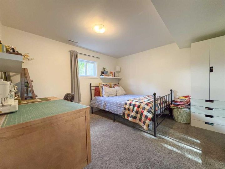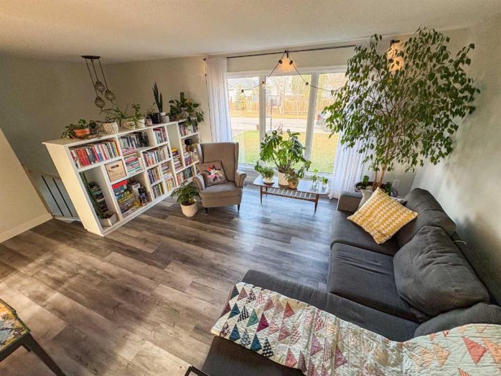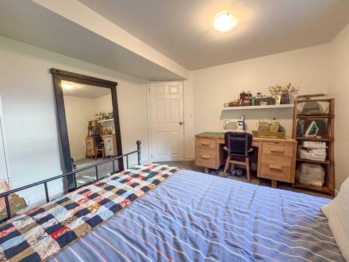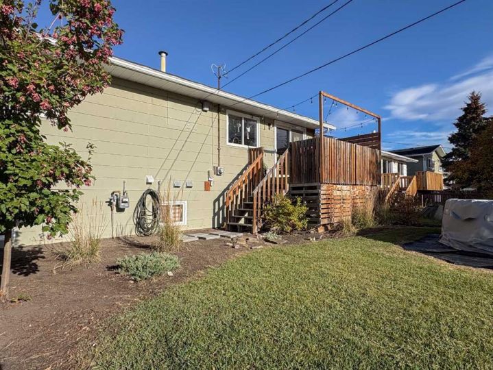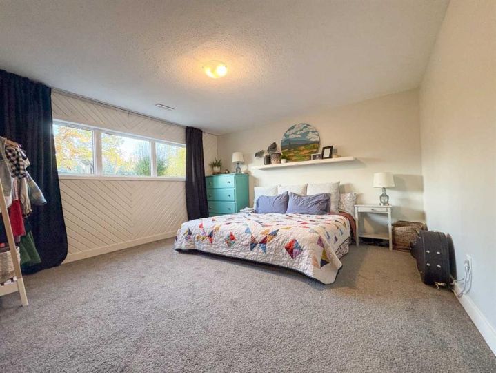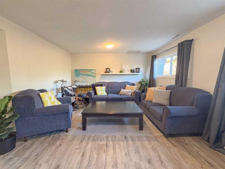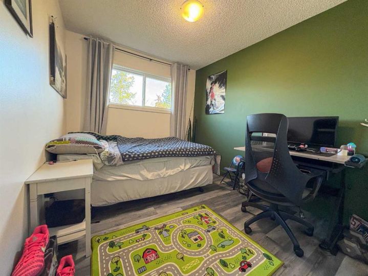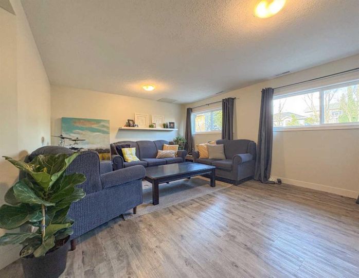 Charming Home in the Heart of Sexsmith. This fully developed bi-level is ideally situated backing onto the scenic trail system that runs throughout Sexsmith, providing easy access to nature and community amenities. The main floor features a bright and spacious living room complete with custom built-in bookshelves, creating a warm and inviting atmosphere. The kitchen has undergone a complete renovation, showcasing new countertops, cabinets, backsplash, and a dishwasher, combining modern style with everyday functionality. The upper level includes three generously sized bedrooms and a large bathroom, all complemented by cohesive green tones that flow throughout the space. The thoughtfully designed basement provides an additional living area, a half bathroom, the primary bedroom, and an extra spare room, offering ample space for family or guests. The exterior is equally impressive, with a massive yard that includes beautiful gardens, a firepit area, and plenty of green space to enjoy. There is paved alley access to the back with plenty of space to build your dream shop! With its desirable location (a block away from both the Elementary & High School) , functional layout, and recent updates, this property presents an excellent opportunity to own a beautiful home in a great community and at an affordable price.