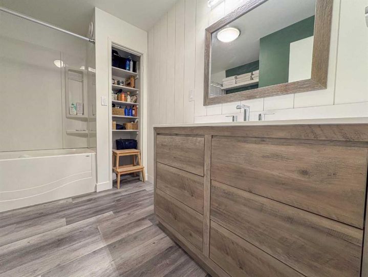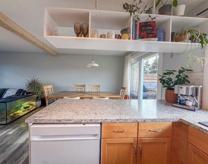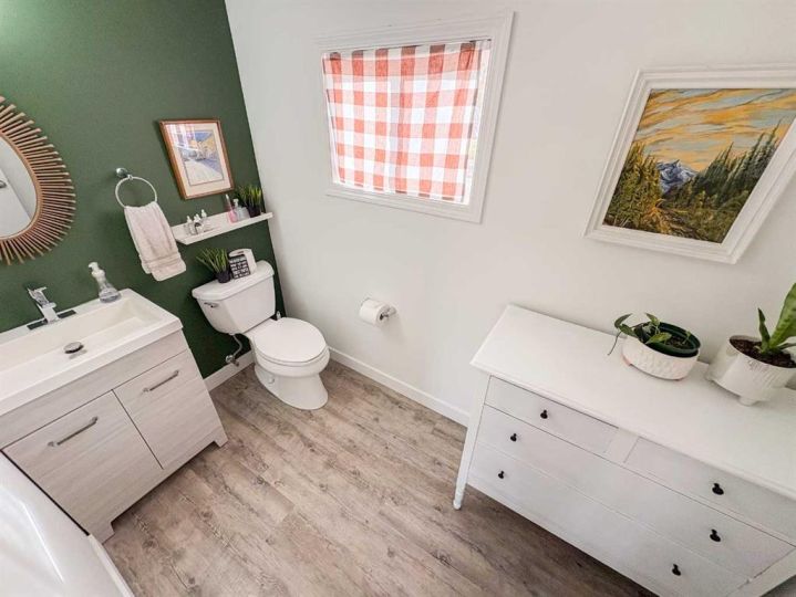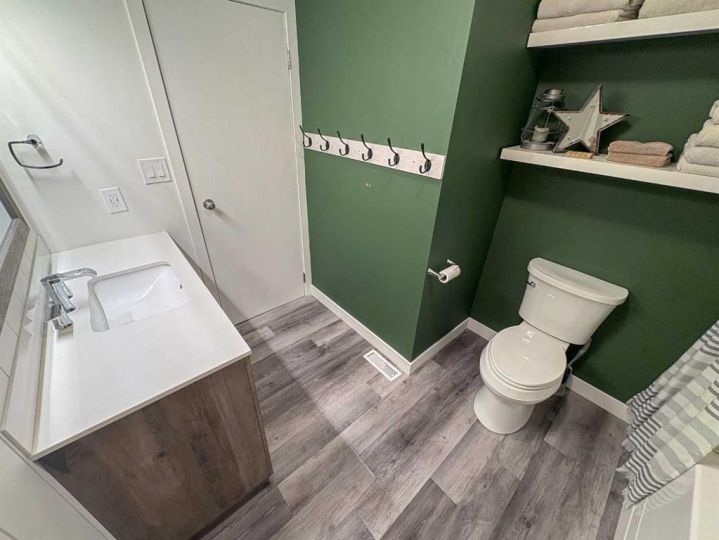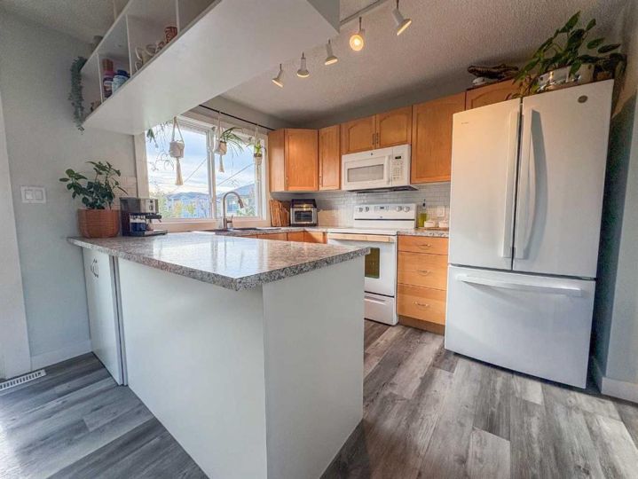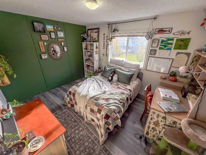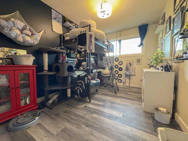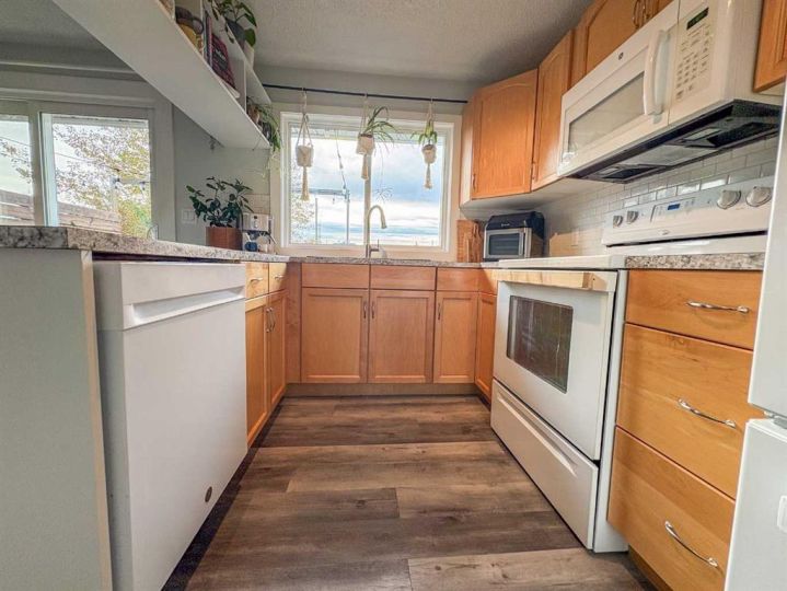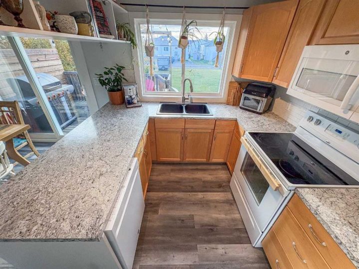 Charming Home in the Heart of Sexsmith. This fully developed bi-level is ideally situated backing onto the scenic trail system that runs throughout Sexsmith, providing easy access to nature and community amenities. The main floor features a bright and spacious living room complete with custom built-in bookshelves, creating a warm and inviting atmosphere. The kitchen has undergone a complete renovation, showcasing new countertops, cabinets, backsplash, and a dishwasher, combining modern style with everyday functionality. The upper level includes three generously sized bedrooms and a large bathroom, all complemented by cohesive green tones that flow throughout the space. The thoughtfully designed basement provides an additional living area, a half bathroom, the primary bedroom, and an extra spare room, offering ample space for family or guests. The exterior is equally impressive, with a massive yard that includes beautiful gardens, a firepit area, and plenty of green space to enjoy. There is paved alley access to the back with plenty of space to build your dream shop! With its desirable location (a block away from both the Elementary & High School) , functional layout, and recent updates, this property presents an excellent opportunity to own a beautiful home in a great community and at an affordable price.