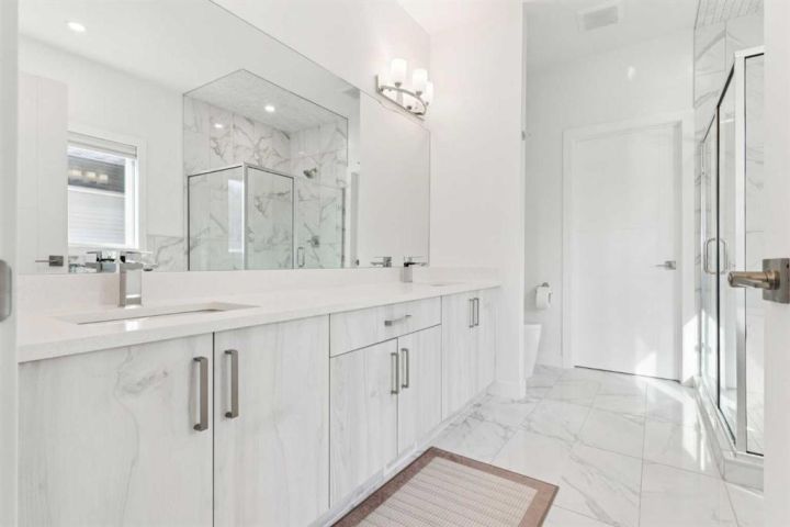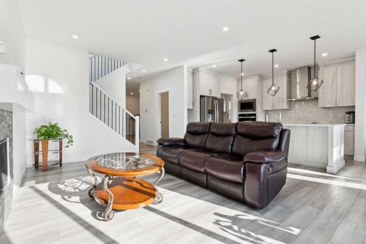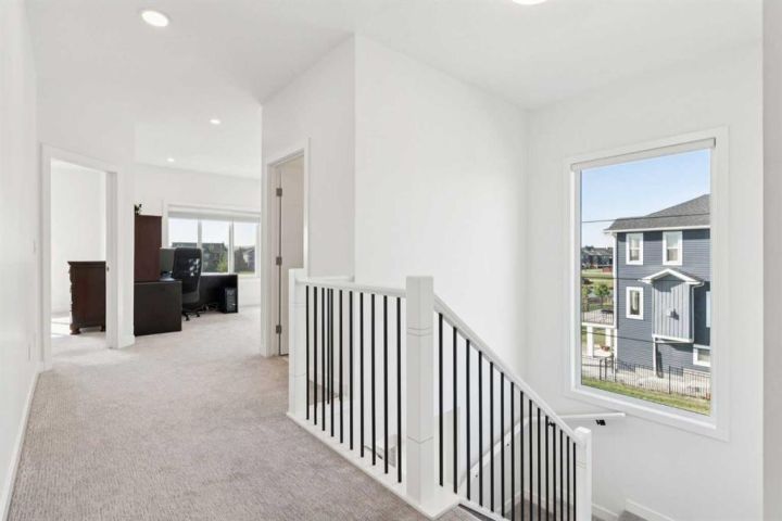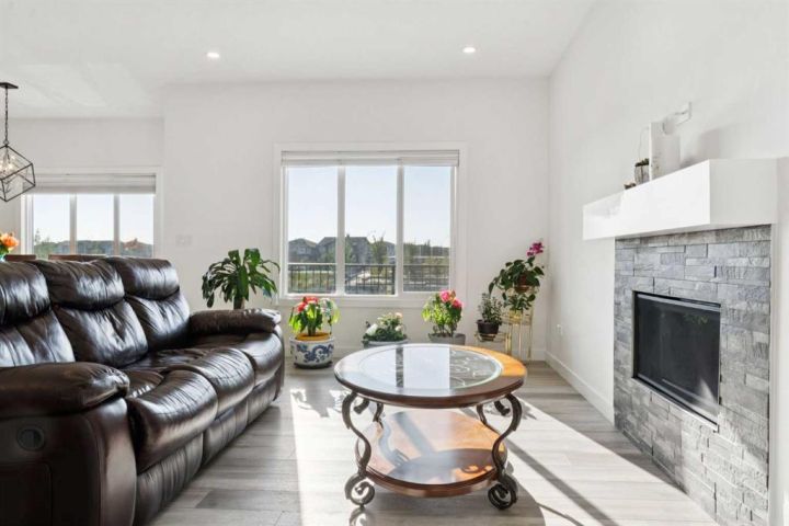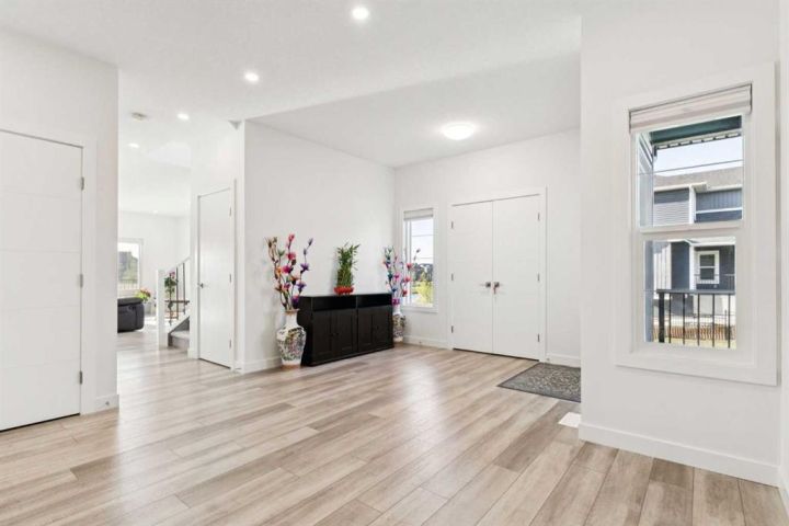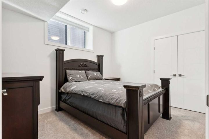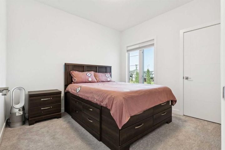 Welcome to your dream family home! This exquisite Walkout property, built in 2022 on a premium Corner Lot in Midtown Airdrie, seamlessly blends modern luxury with practical living. Featuring 6 Bedrooms, 4.5 Bathrooms, and Two master suites, and total over 3300 sqft developed living area, it offers flexible living space perfect for any lifestyle. Step inside to discover a sun-filled open-concept layout with 9-foot ceilings and oversized windows framing serene lake views. The main level offers a welcoming foyer, a spacious living and dining area, and a chef’s kitchen complete with a gas range, full-height cabinets that extend to the ceiling, providing plenty of storage space, and a versatile Spice Kitchen —perfect for effortless cooking and gatherings. Upstairs, enjoy four generously sized bedrooms, including Two luxurious master suites. The primary retreat boasts stunning lake views, a walk-in closet, and a spa-like 5-pc ensuite with dual vanities and a freestanding tub. A second master bedroom faces the quiet green space and includes its own walk-in closet and ensuite bathroom. A bright bonus room overlooking the lake and a convenient laundry room complete this level. The fully finished walkout basement is an entertainer’s delight, featuring two additional bedrooms, a full bathroom, a stylish wet bar, and a massive laundry room with extra storage—offering excellent potential for guests, teens, or rental income. Outside, the professionally landscaped backyard includes a custom garden, new concrete steps, a widened driveway, and a peaceful sunroom with motorized blinds. Enjoy summer days on your deck overlooking the pond, while kids play in the nearby playground. Recent upgrades include a new AC system (July 2025), new iron fencing, fresh concrete work, and more. Located moments from green spaces, lake access, and a school bus stop directly across the street, this home combines luxury, location, and lifestyle like no other. Don’t miss the chance to make this extraordinary property your own!