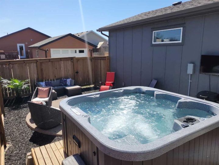2018 bungalow in Coaldale with 1,514 sq ft on main, high ceilings, open layout, three bedrooms, and two bathrooms including primary suite with walk-in closet and ensuite. Bright kitchen with modern cabinetry, central island, and ample storage. A super functional mud room/laundry combo on the main. Basement with high ceilings and large windows, partially finished, framed for three more potential bedrooms and roughed-in bathroom, offering room to grow and build equity. Fully fenced low-maintenance backyard perfect for entertaining with hot tub, fire pit, and double detached garage with alley access. Don’t miss this opportunity!!! comfort, style, and future potential all in one home. Schedule your showing today!
