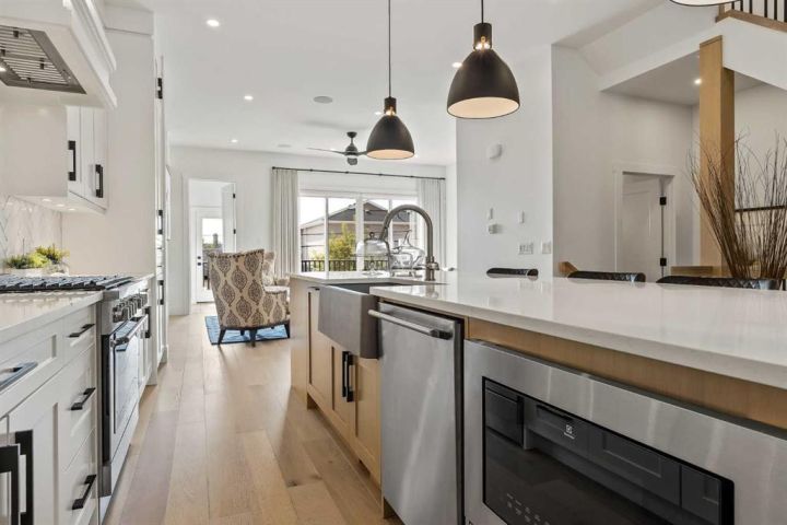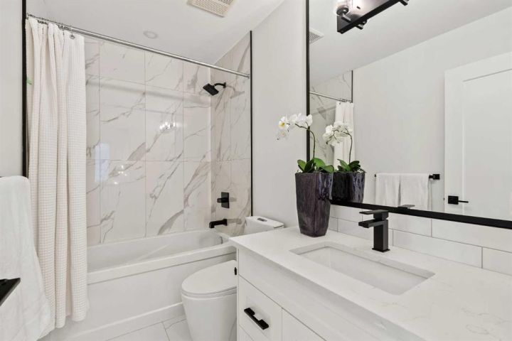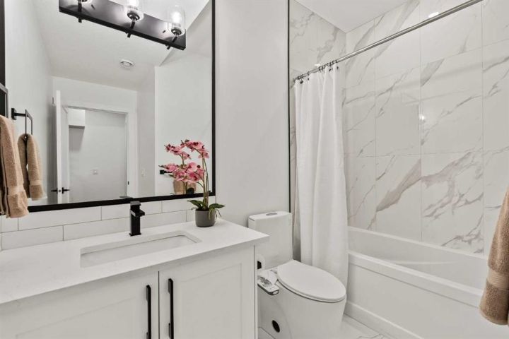 Built in 2022, this highly upgraded home in the heart of Marda Loop offers over 2,900 sq. ft. of thoughtfully designed living space (2,081 sq. ft. above grade plus 848 sq. ft. developed down).Inside, soaring 10 ft. ceilings, oversized windows, designer lighting, built-in speakers, and hardwood flooring create a bright and modern atmosphere. The gourmet kitchen impresses with industrial-sized appliances, a massive quartz island with breakfast bar, and a beverage centre and loads of built-ins. The living room features full-height cabinetry, a sleek linear fireplace with built-ins, and access to a spacious deck through oversized doors with custom privacy blinds. A dramatic dining room with extensive millwork and ripple-fold drapery completes the main floor, along with a custom mudroom designed for style and function. Upstairs, the luxurious primary retreat boasts a grand tray ceiling, LED feature wall, a walk-in closet with extensive built-ins, and a spa-inspired ensuite with in-floor heating, dual sinks, steam shower, and soaker tub. Two additional bedrooms, a full bathroom, and a large laundry room with sink and storage round out the level. With hardwood flooring and tile in the bathrooms, the only carpet is in the two bedrooms . The fully developed basement offers a large rec room with wet bar and cabinetry, a glass-enclosed gym, a spacious fourth bedroom with walk-in closet, and a stylish 4-piece bath. From custom window coverings (including blackout options) to premium millwork and finishes throughout, this home delivers uncompromising quality. All within steps of the vibrant shops, dining, and amenities of Marda Loop.