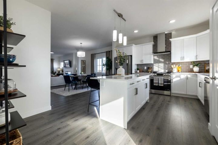Tucked into Calgary’s scenic southwest, Pine Creek is a thoughtfully designed community that blends natural beauty with modern convenience. Surrounded by the rolling foothills and just minutes from Fish Creek Park, residents enjoy peaceful walking trails, wetlands, and mountain views right outside their doors. With quick access to Macleod Trail, Stoney Trail, and the Somerset/Bridlewood LRT station, commuting is seamless. Nearby amenities like Township Centre, Silverado Shopping Centre, and Spruce Meadows offer shopping, dining, and entertainment options. Whether you're raising a family or seeking a tranquil retreat, Pine Creek offers a balanced lifestyle rooted in nature and community. Spanning approx. 1613 SQFT, this home offers a SIDE ENTRANCE, thoughtfully designed layout and modern features. As you step inside, you'll be greeted by an inviting open concept main floor that seamlessly integrates the living, dining, and kitchen areas. Abundant natural light flowing through large windows highlights the elegant laminate and vinyl flooring, creating a warm atmosphere for daily living and entertaining. Upstairs, you'll find a bonus room + 3 bedrooms that provide comfortable retreats for the entire family. The primary bedroom is a true oasis, complete with an en-suite bathroom for added convenience. **PLEASE NOTE** PICTURES ARE OF SHOW HOME; ACTUAL HOME, PLANS, FIXTURES, AND FINISHES MAY VARY AND ARE SUBJECT TO CHANGE WITHOUT NOTICE. SOME PHOTOS ARE VIRTUALLY STAGED.