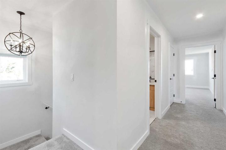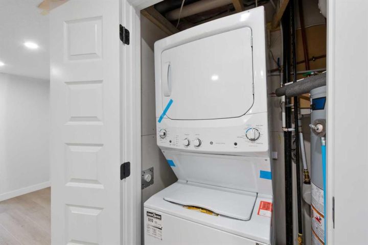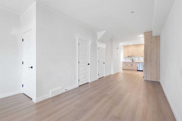 Welcome to this stunning, newly constructed half duplex in Olds, Alberta, offering modern living with exceptional rental potential. The main floor features a spacious living room that seamlessly flows into a contemporary kitchen equipped with brand-new appliances and ample cabinetry. Adjacent to the kitchen is a dining area, perfect for family meals or entertaining guests. A convenient 2-piece powder room completes this level, ensuring comfort and functionality. From the dining area, step out onto a private backyard deck, ideal for outdoor relaxation and gatherings. Upstairs, you'll find three generously sized bedrooms, each offering ample closet space and natural light. The master suite boasts an 4 piece ensuite bathroom, providing a private retreat. An additional 4-piece bathroom serves the other two bedrooms, and a dedicated laundry area adds to the home's convenience. The lower level houses a legal basement suite with its own separate side entrance, ensuring privacy for tenants. This legal suite includes two spacious bedrooms, a large kitchen area, with dishwasher, stove, fridge, a 4-piece bathroom, and laundry in the hall with stacking washer and dryer. A storage room offers additional space for belongings. Whether you're seeking a mortgage helper or an investment property, this legal suite provides excellent rental income potential. Located near Olds College, this property is ideally situated for a rental property. With its modern design, legal suite, and prime location, this home offers both comfort and investment value.