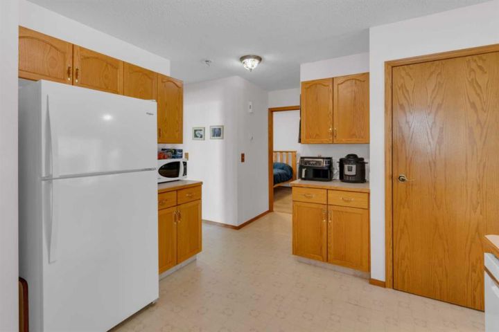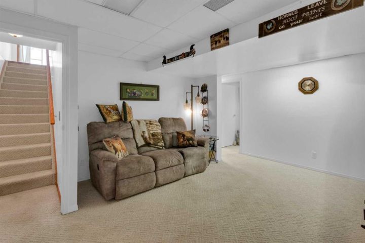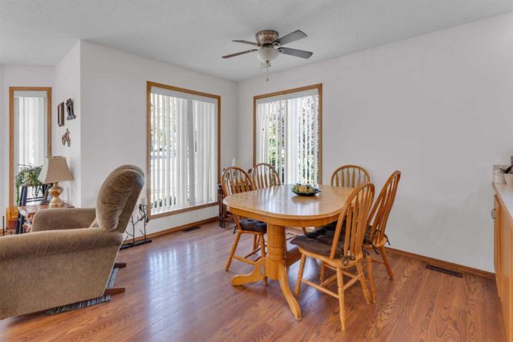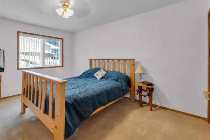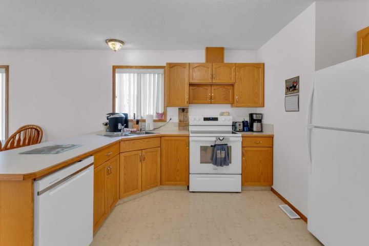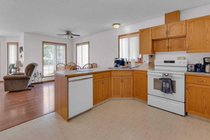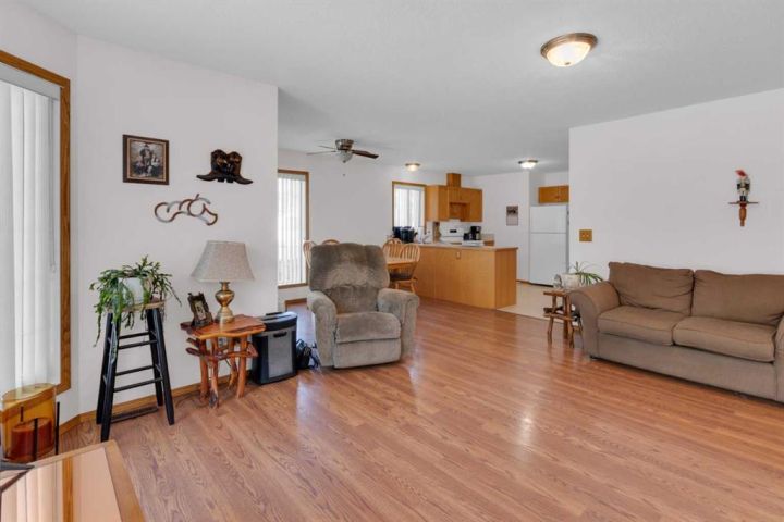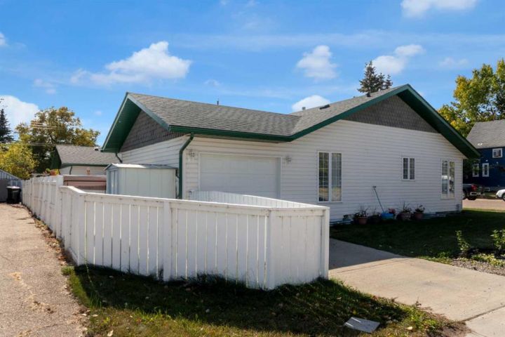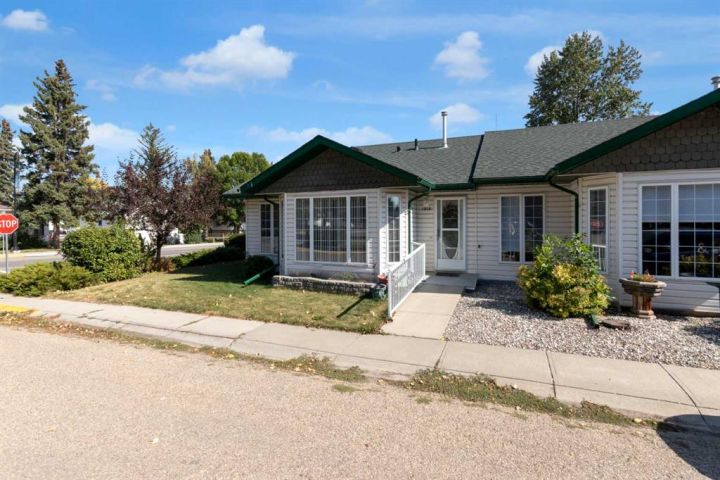 Welcome to this beautifully maintained home offering comfort, convenience, and lifestyle all in one. Perfectly situated on a large corner lot, this property is just steps from Main Street, shopping, the hospital, and all the amenities the friendly town of Didsbury has to offer. Say goodbye to condo fees and pet restrictions, this move-in ready home is ideal for 50+ Adult living, downsizers and investors. Inside, you’ll love the bright open-concept main floor with higher ceilings and an abundance of windows that fill the space with natural light. The spacious living area flows seamlessly into the dining and kitchen space, where you’ll find newer appliances (updated within the last 2 years). Thoughtful touches such as laminate flooring throughout, larger doorways, and a wheelchair-friendly design make this home both stylish and functional. The main level features 2 comfortable bedrooms, a full 4-piece bath, and the convenience of main floor laundry. Downstairs, the fully developed basement offers incredible additional living space with 2 more bedrooms, another 4-piece bath, a cozy family room, and a generous storage area. Step outside to enjoy the fully fenced yard, complete with a doggie door leading to the garage. The attached single garage includes built-in shelving and a workbench—perfect for hobbies or storage. Mature perennials and shrubs add a touch of charm to the landscaping, giving the home wonderful curb appeal. With a newer roof (redone within the last 9 years)This is a rare opportunity to own a versatile and welcoming home in a fantastic location. Don’t miss it!