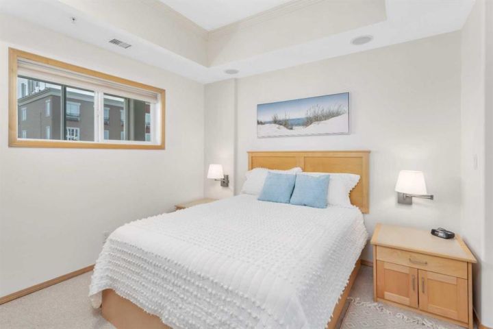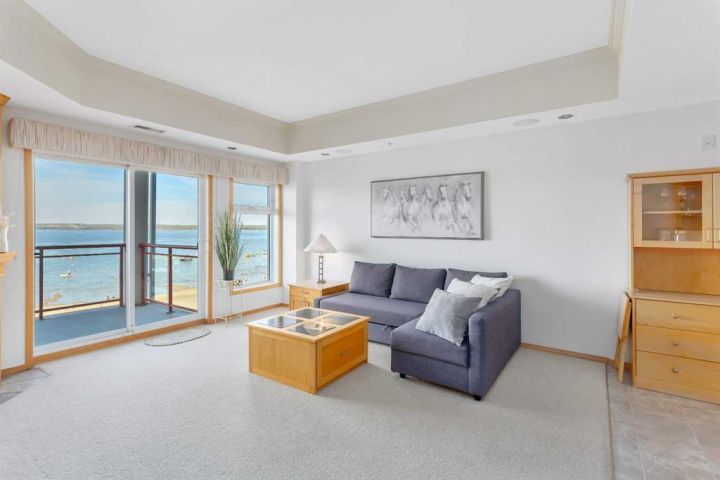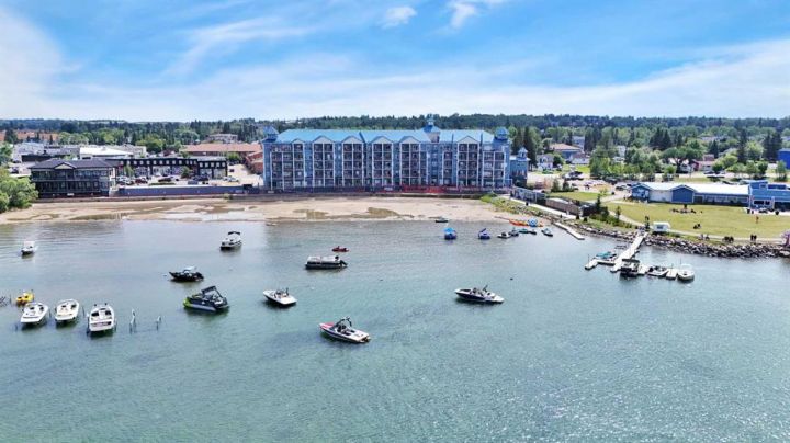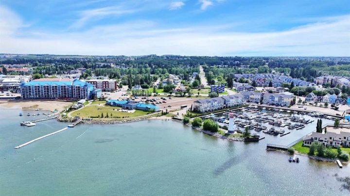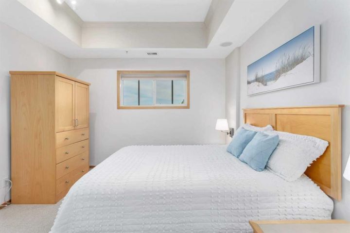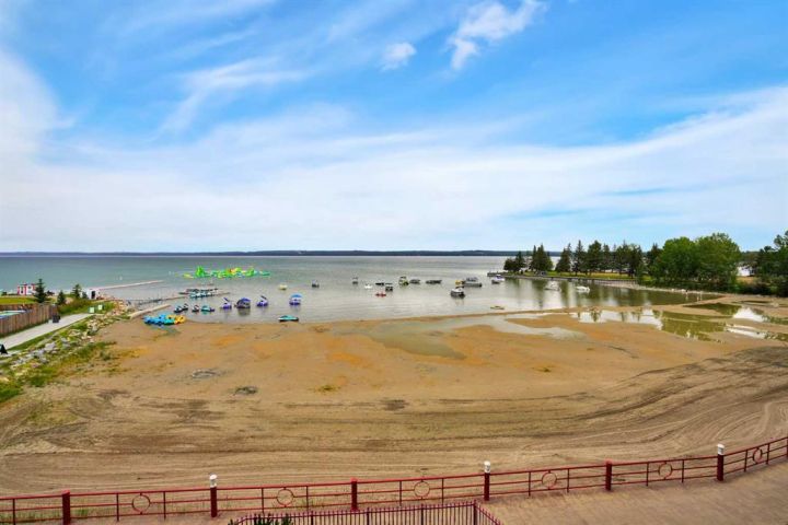 Discover the ultimate lakeside haven in this stunning Sylvan Lake condo, thoughtfully designed for both comfort and style. Perched on the 3rd floor, this bungalow-style gem features a patio that opens directly onto a serene sandy beach, creating an idyllic setting for relaxation and entertaining against the backdrop of picturesque lake views. Step inside to find an exquisitely upgraded interior, showcasing a spectacular bright layout with coffered ceilings. The gourmet kitchen is a chef’s dream, equipped with quarts countertops and top-of-the-line stainless steel appliances, perfect for culinary adventures. This enchanting 1-bedroom, 1-bathroom retreat is bathed in natural light and offers a cozy gas fireplace for those cooler evenings. Stay comfortable year-round with central A/C. Impeccably maintained and in pristine condition, this home is truly move-in ready. You’ll also appreciate the convenience of 1 titled heated parking stall and an all-inclusive condo fee that covers all utilities, internet, and cable. Ideally located just steps from vibrant downtown amenities, this is a rare opportunity to experience lakeside luxury at its finest. Your dream lakefront escape is here—don’t let it slip away!