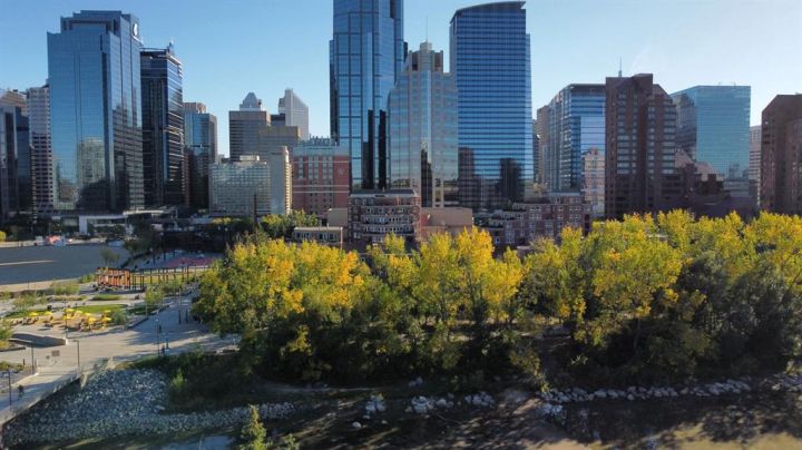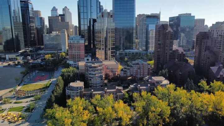 Experience elevated downtown living in this freshly painted and exquisitely updated 1 bedroom plus den residence, designed for discerning buyers who value elegance, convenience, and a truly maintenance-free lifestyle. With sweeping north and west views of the Bow River Valley and Prince’s Island Park, this home offers a serene retreat amidst the vibrancy of the city. Every detail has been thoughtfully curated, from the rich black walnut hardwood floors to the granite countertops and a modern chef’s kitchen with premium stainless steel appliances, including an induction range. The light-filled den, overlooking a private courtyard, offers versatility as a refined home office, welcoming guest suite, or easily converted second bedroom. The spacious primary retreat features a generous walk-in closet, ensuite with a deep soaker tub, and abundant storage, complemented by a second full bath with a walk-in tiled shower. Step onto the expansive west facing terrace, perfect for entertaining or unwinding, complete with a gas BBQ line and panoramic river valley views. For those seeking the ultimate indulgence, hot tubs are permitted with board approval, creating a private outdoor sanctuary. This luxury residence also includes heated titled parking, underground storage, in-suite Miele laundry, on-site management, and a convenient car wash bay. Condo fees cover all utilities except cable and internet, ensuring effortless living. Set within Calgary’s most prestigious riverside community, and just steps from the newly opened members-only Eau Claire Athletic Club, this home is ideal for snowbirds, downsizers, and buyers seeking a secure lock-and-leave lifestyle. Suite 8704 defines sophistication, comfort, and turnkey luxury in the heart of Eau Claire. Book your private showing today.