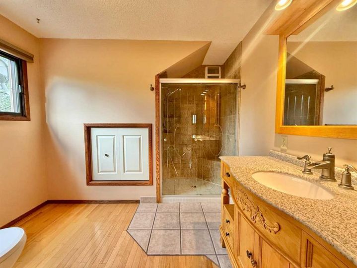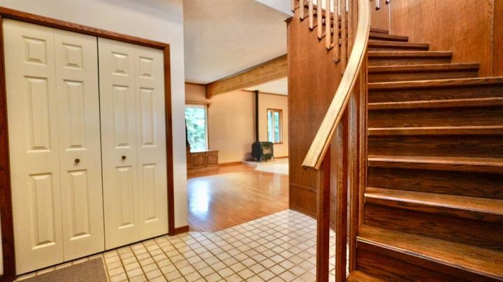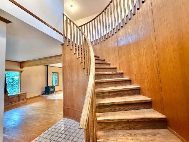 The Perfect Acreage Close to Town! If you’ve been looking for an acreage just minutes from Grimshaw, this one could be the perfect fit. Set on 3.07 acres, it offers the best of both worlds—peaceful country living with the convenience of town close by. At the heart of the property is a beautifully hand-crafted 2,585 sq. ft. two-storey home full of character and thoughtful details. As you step inside, the impressive spiral staircase and maple hardwood floors set the tone for a warm and welcoming space. Upstairs you’ll find four bedrooms all together on the same level, an ideal layout for families. The spacious primary suite has his-and-hers closets and its own ensuite with a tiled walk-in shower. A second full bathroom with a soaker tub is also upstairs, while a handy two-piece powder room is located on the main floor for guests. The main level is bright and inviting, with an open-concept kitchen that has a large walk-in pantry, practical island, and plenty of storage. The kitchen flows into the dining area, where a cozy pellet stove adds warmth and patio doors lead you out to the wrap-around deck. The living room is roomy and comfortable, featuring custom built-in bookshelves and a TV stand. For those who work from home or need a quiet spot, there’s a private office with built-in shelves and a desk. A convenient laundry room rounds out the main floor. Outside, you’ll appreciate the attached single-car garage, the covered wrap-around deck, and the hot tub tucked into the privacy of the backyard. This acreage is also well set up for anyone who needs extra space for projects or business. The massive 58’ x 28’ heated shop is a standout, complete with a mezzanine that has full living quarters including two bedrooms, a bathroom, and a kitchen area. The shop also features a full-length addition with overhead doors on each end for easy access. Two large storage sheds—one enclosed and one an open lean-to—add even more room for tools, equipment, or supplies. The yard has been nicely landscaped with a garden, manicured lawn, and plenty of mature trees, making it a beautiful and private place to call home. With so much to offer and a location that can’t be beat, this acreage is ready to welcome its next family.