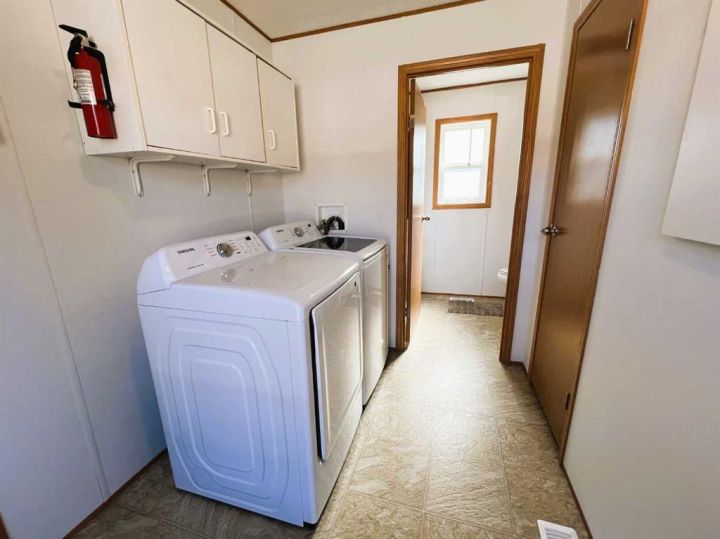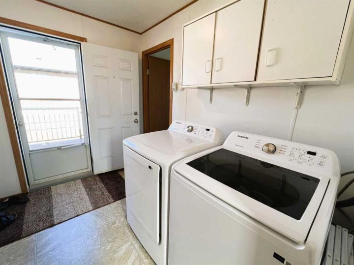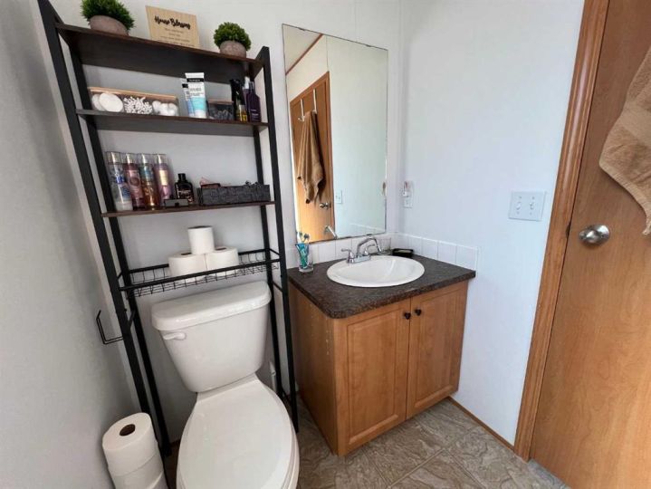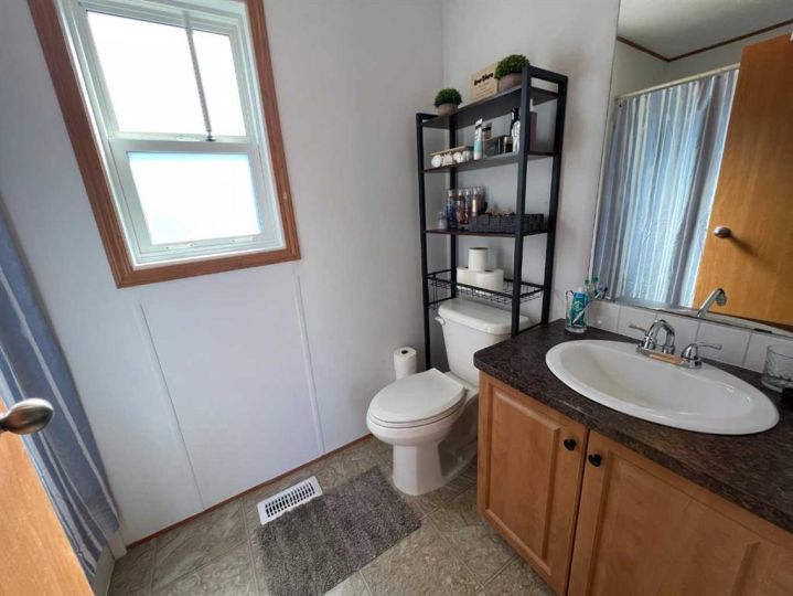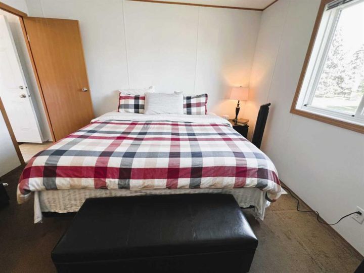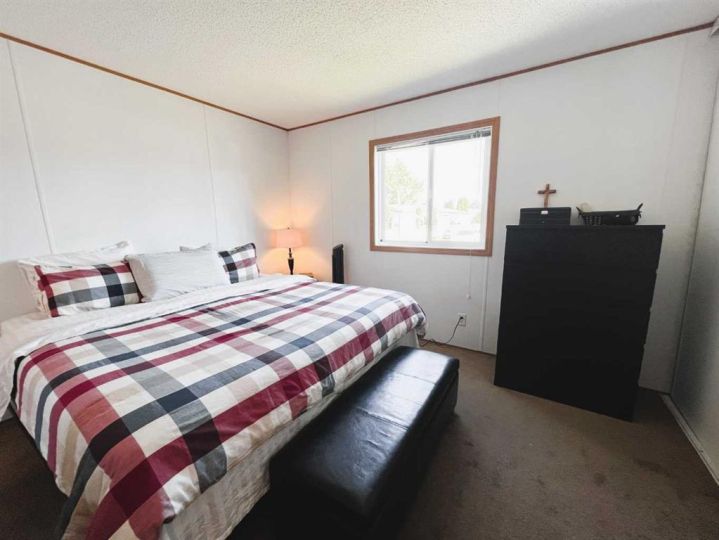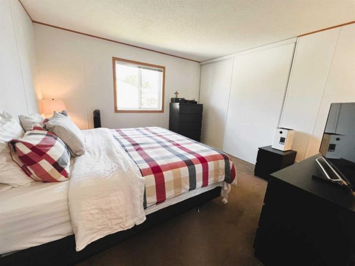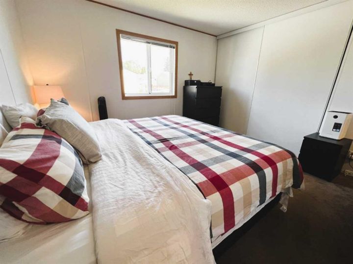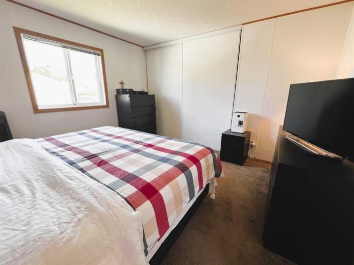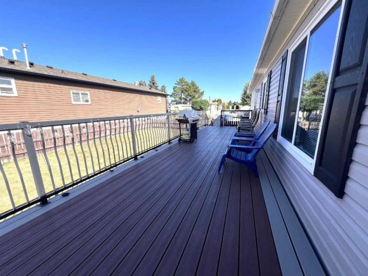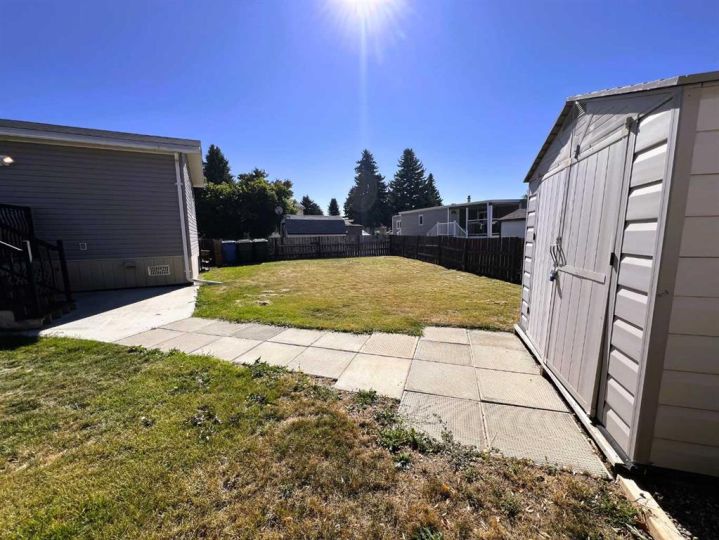 Looking for something bright and affordable with a large fenced yard? You've just found it! Freshly painted throughout, this 2 bedroom home with vaulted ceilings has been gently lived in and has brand new stainless steel kitchen appliances and new a washer & dryer. The kitchen is open and spacious with warm, maple cabinetry and plenty of counter space and overlooks the large living room. The laundry area is conveniently situated just outside the primary bedroom for ease of use. Enjoy the beautiful sunset on the large deck overlooking the spacious yard where there's plenty of room to putter around in if you are inclined to create a beautiful garden area. There are 2 paved parking spaces for your vehicles and the property backs onto a green space. Located in a great community and close to walking paths, this home is perfect!