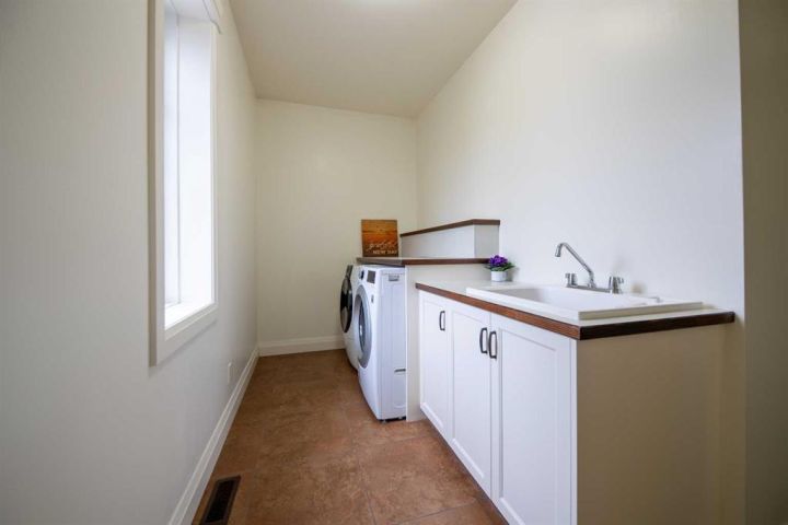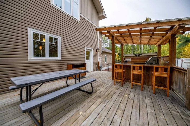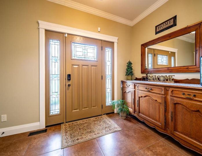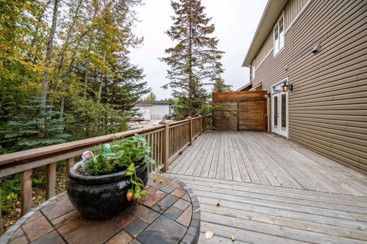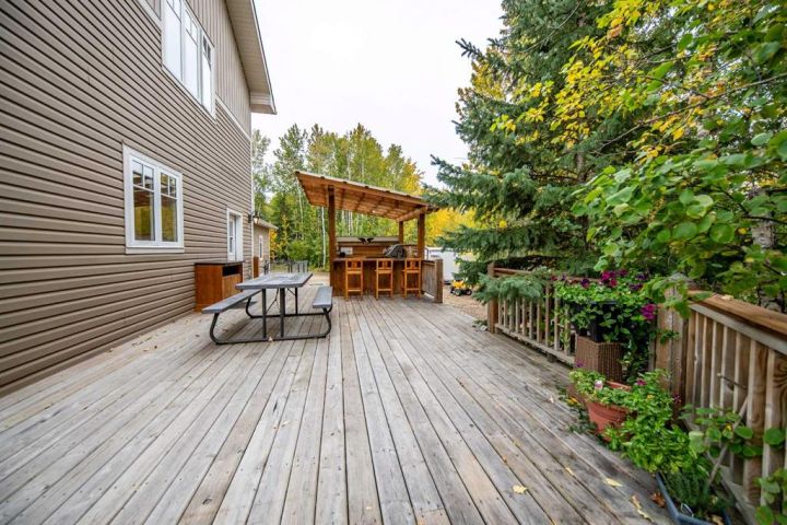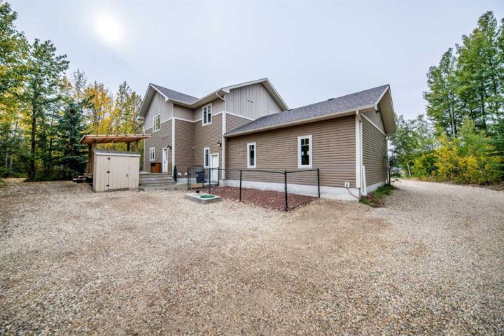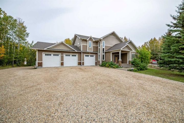 Welcome to this impeccably crafted custom home, nestled at the end of a private cul-de-sac on a beautifully treed 1.14-acre lot in Maple Ridge Estates. Built in 2010 with extraordinary attention to detail, this 4-bedroom, 3.5-bathroom executive home offers a perfect balance of luxury, functionality, and thoughtful design—ideal for both growing families and professionals alike. Step inside and experience a warm and refined interior featuring oak hardwood floors, travertine staircase, and custom cabinetry with soft-close drawers, under-cabinet lighting, and granite countertops. The gourmet kitchen is an entertainer’s dream with a walk-through pantry, gas stove with custom steel backsplash, stainless steel appliances, and a built-in sound system wired throughout the home. The spacious master retreat is a true sanctuary, complete with a spa-inspired ensuite boasting a soaker tub (pre-wired for jetted conversion), custom tile shower, his-and-hers sinks, and limestone finishes throughout all bathrooms. 3 additional oversized bedrooms offer generous closet space, and a dedicated office on main floor with a built-in desk plus a soundproofed downstairs bedroom provide flexible options for work and relaxation. Designed with year-round comfort in mind, this home features in-floor radiant heating (4 zones), ICF construction up to the first floor, vinyl windows, and a high-efficiency Lennox furnace with UV light, all contributing to incredibly low heating costs (approx. $250/month). The finished basement offers tile flooring, RBG lighting, ample space for theatre and games room. Rough ins for wet bar contribute to making this basement full of oppotunity and personalization. Exercise room can be converted into a hobby room. Outside, the perks continue with a wrap-around deck, outdoor kitchen with gas hookup, firepit area, and professional landscaping including Chinese Elm and blooming perennials for exceptional curb appeal. The gravel-packed turnaround driveway leads to a massive attached triple car garage featuring 10’ doors, built-in cabinets, utility sink, and drains —perfect for hobbyists, or car enthusiasts! Do you have friends and family who love to visit? There is full RV hookups for septic, water, and power. Zoned to accommodate a home-based business or secondary shop (services are there) at this exceptional home. City water makes this home top of list! Call a realtor today and ask for a FULL FEATURES LIST!