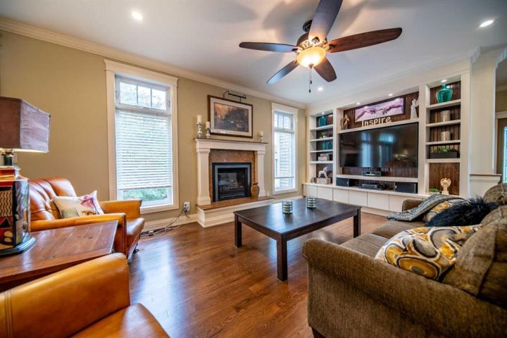 Bookcases, Built-in Features, Ceiling Fan(s), Central Vacuum, Closet Organizers, Crown Molding, Double Vanity, Granite Counters, Kitchen Island, Natural Woodwork, No Smoking Home, See Remarks, Soaking Tub, Sump Pump(s), Vinyl Windows, Walk-In Closet(s), Wired for Data, Wired for Sound