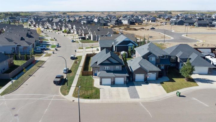 At just under 1600 sq. ft. this modified bi-level offers a lot of extras and offers that extra space that many families need. This home is purely move in ready and has had a lot of attention to details. A bright spacious tiled foyer greets you upon entry offering space for guests coming and going, the angled staircase with decorative wainscotting makes you immediately feel at home. You'll enjoy the large island, granite counter tops, back splash, corner pantry, stainless steel appliance package with gas cooktop and high ceilings. The natural light flows. Imagine the coziness you'll feel from the stunning electric fireplace with decorative floor to ceiling stone and the dining area is perfect for those who enjoy entertaining. A full bathroom and two bedrooms complete the main floor. Onto the spacious deck, you'll appreciate knowing it's maintenance free, and sit and relax on the lower patio. The upper master retreat offers a spacious bedroom, 3 pce ensuite, and large walk in closet. The fully finished basement is perfect for every family, with huge family room, two very large bedrooms, a full bathroom, more granite. a stunning laundry area within the utility room. The heated garage and double concrete drive finish of this corner lot into a culdesac. This home is air conditioned and has a water softener. Don't miss this chance to own in Lakeside.