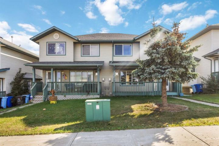 Ideal for First-Time Buyers or Investors, NO CONDO FEES! This move-in-ready duplex is located in the desirable subdivision of Thickwood, just steps from schools, parks, shopping, walking trails, and other everyday amenities—making it a smart choice for families or rental potential for those who like easy access to work and both city and site bus stops, restaurants, grocery stores and more, The main floor offers a bright, open-concept layout that includes a spacious living room with a cozy corner gas fireplace, a fresh white kitchen with stainless steel appliances, a large island, and ample countertop and cabinet space, all overlooking the formal dining area—perfect for entertaining. You'll also love the walk-in pantry on the main level, adding valuable storage space for busy households. With a total of four bedrooms, a main-floor den, three full bathrooms, and a convenient 2-piece powder room, this home offers flexible living for growing families or multiple tenants. The fully developed basement features a kitchenette, providing great potential for a nanny suite or additional rental income. There’s no carpet in the home—just easy-to-maintain laminate flooring throughout—and thoughtful upgrades add even more value. You'll enjoy the convenience of an attached garage with direct access, plus an extended front driveway that offers extra parking space. Other highlights include a central vacuum system, a Hydro FLOW water softener( a chemical-free way of softening water, visit https://www.hydroflow.ca). Additional upgrades include shingles replaced five years ago, and a hot water tank that is approximately 7–8 years old. This home is in fantastic condition, and the exterior also features a front veranda and a quaint yard space. This home combines location, layout, and long-term value—an excellent opportunity you don’t want to miss. Book your private showing today!