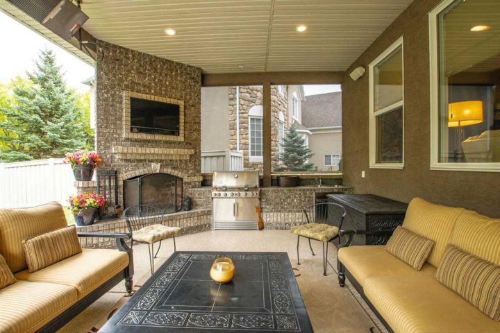 BBQ gas line, Built-in Barbecue, Fire Pit, Lighting, Outdoor Grill, Outdoor Kitchen, Private Yard, Storage