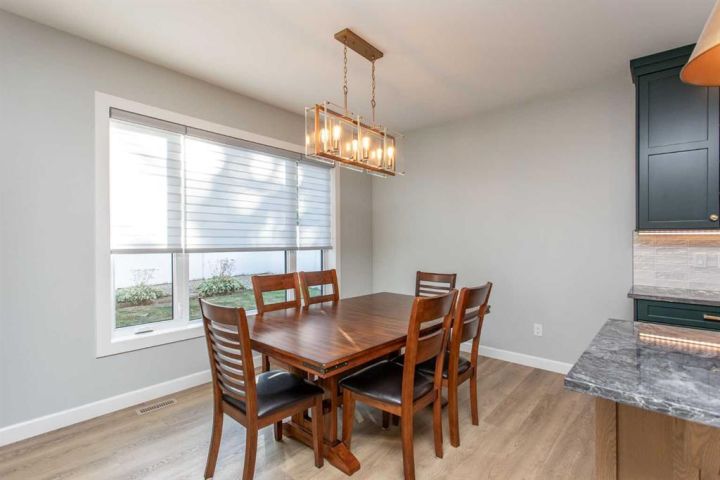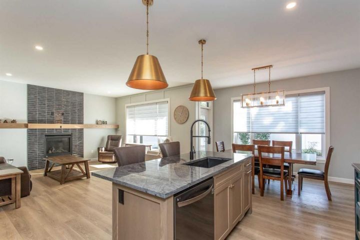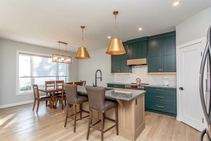 Modern Comfort Meets Warm Style This stunning two-story home is the perfect blend of modern design and inviting warmth. From the moment you step inside, you’ll notice the attention to detail and thoughtful finishes that make this property truly stand out. The heart of the home is the chef-inspired kitchen, featuring rich green cabinetry, sleek brass hardware, statement lighting, and a striking countertop island with seating. Open to the dining and living areas, it’s an entertainer’s dream with seamless flow for family gatherings or cozy nights in by the fireplace. Unique touches are found throughout—from the wood accents to the bold tile fireplace surround—every detail has been carefully chosen to create a space that feels elevated yet welcoming. Upstairs offers comfortable bedrooms, including a serene primary suite designed as a retreat at the end of the day. Outside, enjoy a fenced yard, a spacious covered patio, and modern curb appeal with a double attached garage. This home shows beautifully and combines timeless style with modern function—ready to impress at every turn.