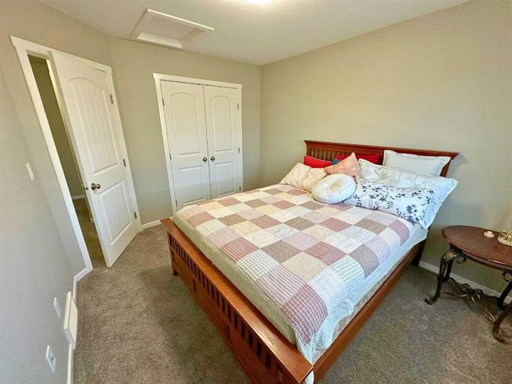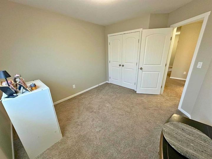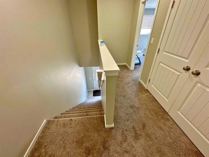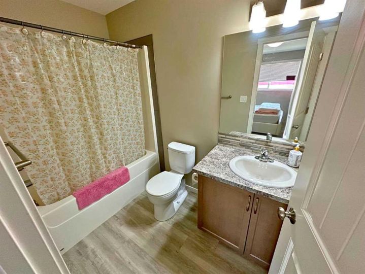 NO CONDO FEES! Welcome to this beautifully maintained 1,425 sq ft home in the heart of Penhold — just minutes from Red Deer. This bright and inviting 4-plex is designed for modern living, with an open-concept main floor that features large windows, durable laminate flooring, and a spacious living area filled with natural light. The well-appointed kitchen includes a central island and opens onto a private back deck through sliding patio doors — perfect for seamless indoor-outdoor living. A convenient 2-piece bathroom completes the main level. Upstairs, you'll find three generous bedrooms, including a primary suite with a walk-in closet and a 4-piece ensuite. An additional full bathroom and an upper-floor laundry area add comfort and functionality. Enjoy the convenience of a single attached garage and a fully fenced backyard — ideal for relaxing or entertaining. Recent upgrades include refreshed lighting, a new microwave, and freshly painted deck and fencing. Located in a vibrant community, Penhold offers amenities such as a recreation center with a fitness area, lounge, library, skate park, and splash park — making it a fantastic place to call home. This pristine property is move-in ready and waiting for you!