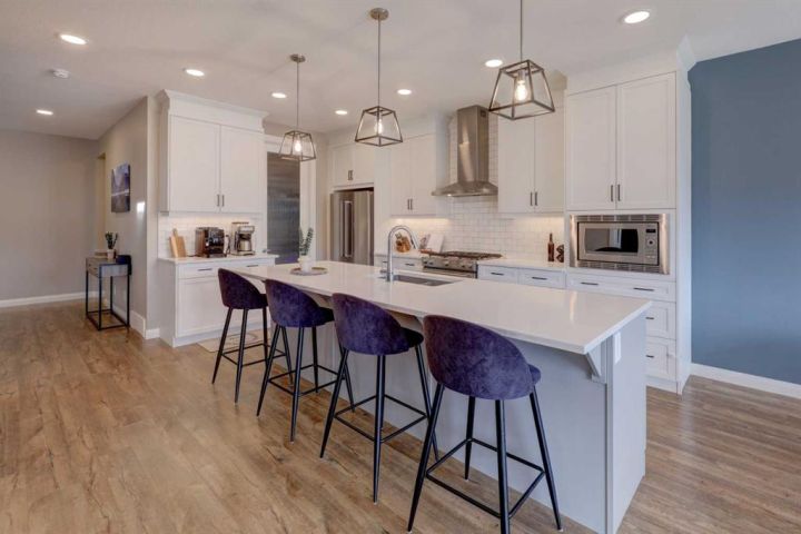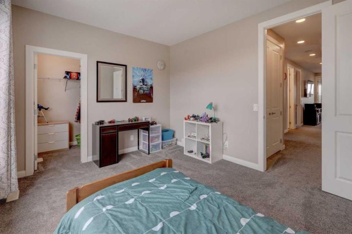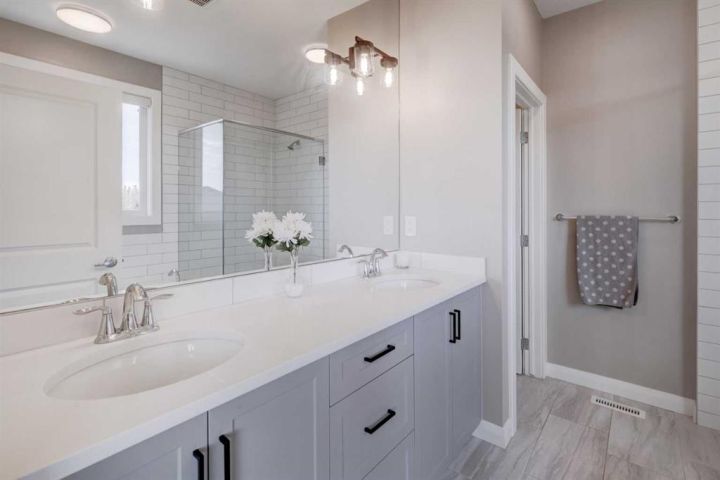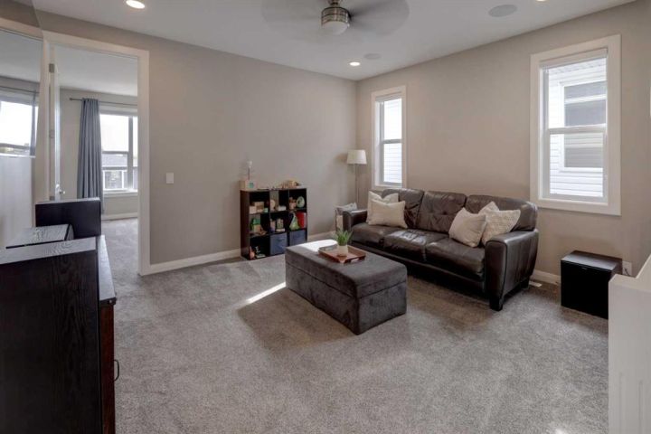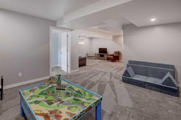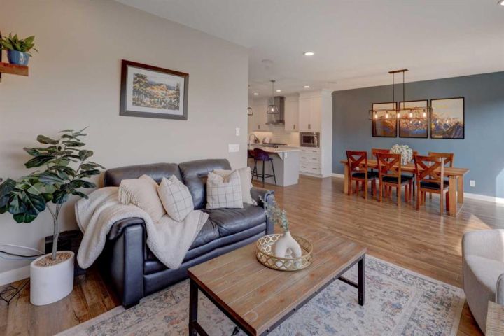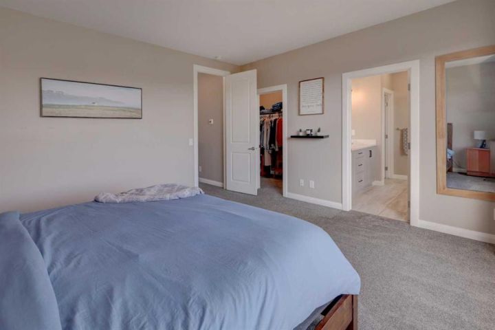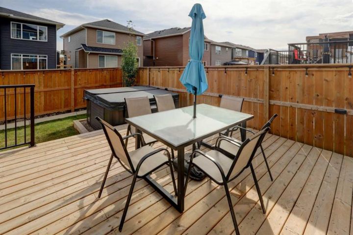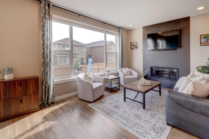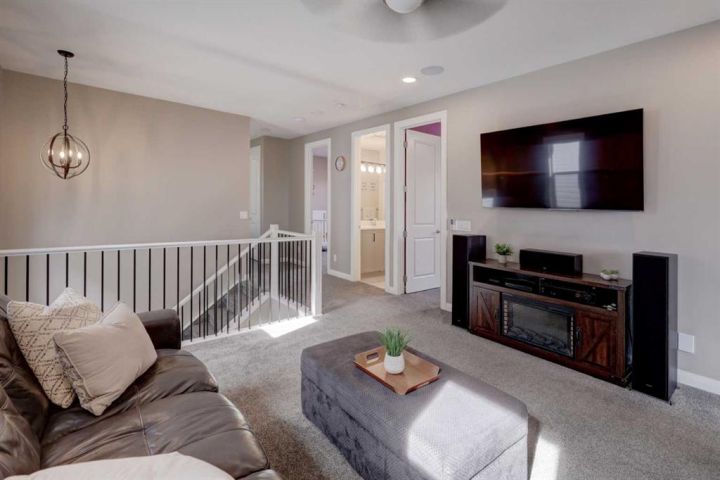 HOME SWEET HOME! Welcome to this beautifully upgraded two storey family home perfectly located in the desirable community of Rivercrest in Cochrane. With 5 bedrooms, 3.5 baths and over 3,579+ SQFT of total living space this home has everything that you could want! As you enter the home you will instantly notice the luxury vinyl plank flooring and sun-drenched mud room with a bench. Moving into the kitchen and main living area you will notice the large kitchen quartz island, perfect for hosting gatherings. The upgraded kitchen is a chef's dream, complete with a gas range, quartz countertops and high-end stainless steel appliances. Just off the kitchen is the office/den with large french doors for privacy. The open concept on the main floor allows you to move with ease between the large dining space and living room where you can enjoy the warmth from the electric fireplace on those cold days. Stepping out onto the large east facing deck through the oversized patio doors you can spend those long summer days BBQing and using the hot tub (included). Heading up to the second level, you get breathtaking mountain views and you can't help but notice the 9 ft ceilings and 8 ft doors while sitting in the bonus room area. The large primary bedroom features a large walk-in closet and a spa-like 5 piece ensuite with a cozy soaker tub and double vanity sinks you will look forward to relaxing. The other 3 bedrooms have ample space and conveniently feature walk-in closets. Don't forget the fully finished basement that features another full bath, bedroom and a large recreation space that can be utilized to suit your needs. This home features a double attached heated garage with additional driveway parking. Located in a extremely family-oriented community close to all major amenities including schools, walking paths, shopping, restaurants and a quick drive to both Calgary and endless opportunities for outdoor adventures. This location is ideal for those looking to embrace a balanced lifestyle, with the majestic Rocky Mountains just a stone's throw away, offering year-round recreation for outdoor enthusiasts. MUST VIEW! Don't wait, book your private viewing of this GEM today!