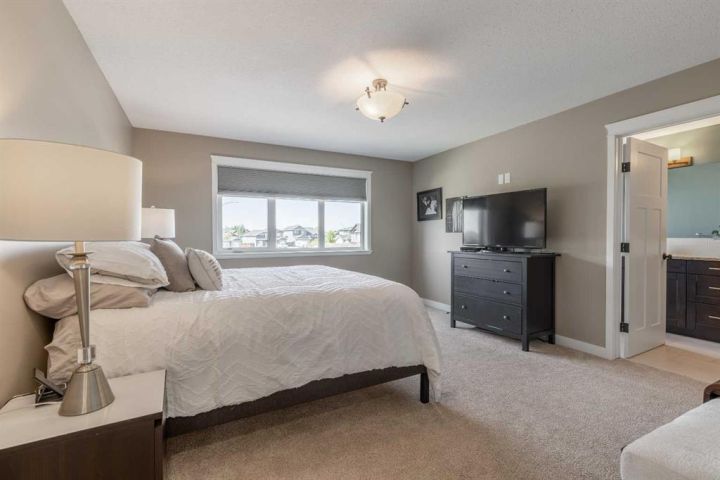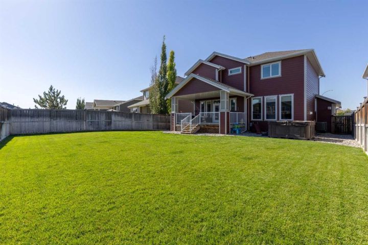 A stunning Cottonwood home that offers a floor plan perfect for entertaining, cozy outdoor spaces and a heated garage to boot! This fully finished 2 storey welcomes you with a covered front verandah, extra long driveway and soaring ceilings on the main floor. A bright and open concept living area hosts a granite adorned kitchen complete with gas stove, built-in book shelves flanking the gas fireplace and only a few steps away from your covered back deck. There's a powder room on the main floor as well as a laundry room with sink! Heading upstairs there is a bonus room right at the top, 2 bedrooms that share a 4 piece bathroom and the primary suite that has a huge walk-in closet and 5 piece ensuite! The finished basement includes a spacious family room, 2 more bedrooms, 3 piece bathroom and storage area! Lots of yard to enjoy out back with a patio, and gas line for your BBQ!