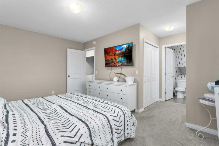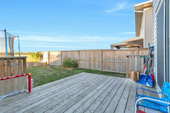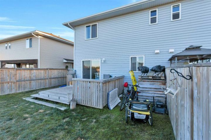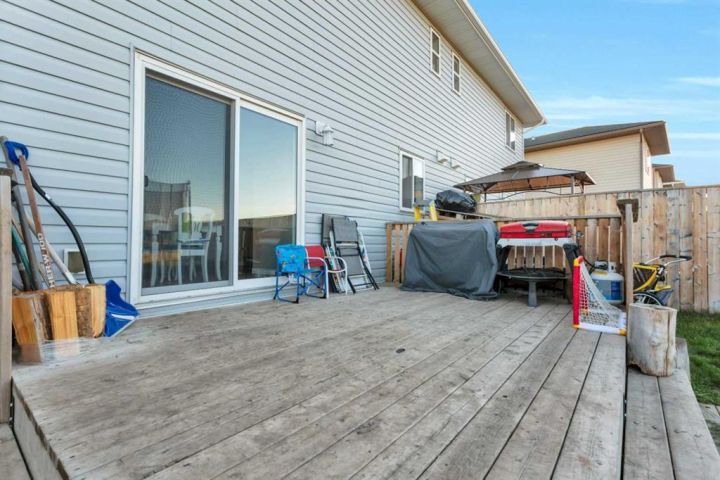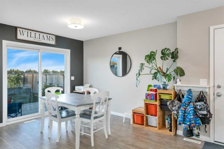 Affordable & Fantastic Starter Home in Didsbury! Looking for the perfect place to start your next chapter? This affordable & fantastic 2-Story Half Duplex offers all the space, comfort, & convenience your family needs—without breaking the bank! Step inside & be welcomed by a well-planned main floor that makes everyday living a breeze. The kitchen is efficiently laid out, keeping everything within easy reach as you prepare meals. The spacious dining area, complete with sliding patio doors, flows seamlessly onto the back deck—ideal for BBQs, morning coffee, or summer gatherings. Just off the dining area, the South-facing living room features a large front window that allows the sunshine to pour in, creating a bright & cheerful space for family time or quiet relaxation. Upstairs is designed with family living in mind. All three bedrooms are located together on the second floor, along with the convenient laundry closet. Each bedroom is generously sized, offering plenty of room to set up all your furniture comfortably. The Primary Suite is a retreat of its own, complete with walk-through double closets & a private 4-piece ensuite. Two additional bedrooms & a full bathroom complete this level, making it the perfect setup for family, guests, or even a home office. Step outside & you’ll love the fully fenced backyard—plenty of room for kids & pets to play safely. And if you need even more space, this property backs directly onto the Didsbury High School field, giving your family endless opportunities to run, play, & explore right out your back gate! The single attached garage offers convenience & storage, or a great work out area, while the home’s location puts you close to schools, parks, & town amenities. Whether you’re a first-time buyer, a young family, or simply looking for an affordable option that doesn’t sacrifice comfort, this property is a fantastic choice! This is YOUR CHANCE TO OWN A GREAT STARTER HOME in a wonderful community. Affordable, functional, & move-in ready—this home has it all! “Home Is Where Your Story Begins!”