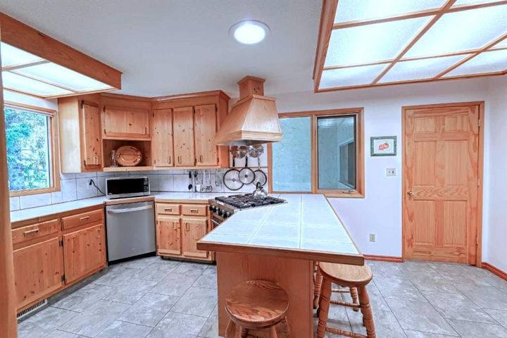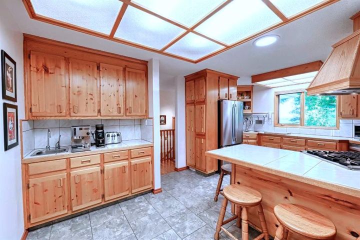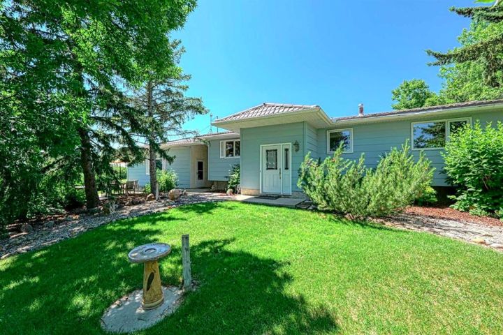20.07 acres. This private property has a beautiful home with a heated oversized double attached garage and sits on a hill with wonderful views. Also included is a huge 32 x 40 HEATED WORKSHOP (220 volt in shop), 22 x 24 BOATHOUSE, GREENHOUSE, RV Parking with electrical hookup, Covered Gazebo, Shed, Covered BBQ station. Solar panels also for electricity (economical and offset the cost for electricity). RMS above grade is 1635sqft, below grade is 1248sqft. As you walk in you will be greeted to the front foyer with tons of area. The main floor has a country kitchen with many cabinets, pantry and a side “coffee bar” with more cabinets and sink. The living/dining/entertainment room is fantastic for visiting, entertaining or to sit quietly, read a book, watch tv or look out the large windows that gives you all the natural light you desire. The bedrooms have large walk-in closets and the other room you could use as the third upper bedroom or the office with built-ins. The laundry room is also on the main floor. Downstairs is mostly open concept that has a family room with gas fireplace, pool table area, jacuzzi tub area, 4th bedroom, bathroom, utility room, storage room, and a pantry/cold room. In this home you can appreciate the many areas of custom shelving for your items to have their own space. In their own growing season, enjoy the raspberries, saskatoons, grapes, apples and the garden for what you want to grow and so much more. The rose bushes, wildflowers, shrubs and mature trees are beautiful and make the property feel tranquil and calm. Kids, pets and even adults can enjoy the open space to run, play and relax. When you come and view, you will see and appreciate the care and love that this home and property has. Short drive to Okotoks, High River or Calgary for all the amenities.