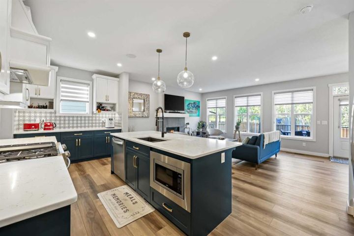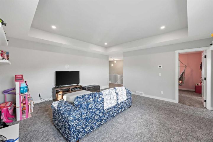 OPEN HOUSE on Saturday, October 4th from 12-4pm. The Best of Both Worlds — Newer Home in Established Coach Hill Community Discover the rare opportunity to own a nearly new home (less than 5 years old) in the exclusive enclave of Coach Ridge, within the established community of Coach Hill. Offering approximately 3,500 sq.ft. of developed living space, this 4-bedroom, 4-bathroom home blends modern finishes with a family-friendly design, all with excellent access to schools, shops, services, and downtown Calgary. The upper level offers 3 bedrooms, including a stunning master retreat with spa-inspired ensuite featuring double sinks, quartz counters, a soaker tub, and separate tile/glass shower. A central bonus room separates the master from the additional bedrooms, which share a spacious 5-piece Jack-and-Jill bathroom. A convenient upper laundry room completes this level. On the main floor, 9ft ceilings, luxury vinyl plank flooring, and bright modern tones set the stage. The open-concept kitchen boasts quartz counters, stainless steel appliances, a large island, and upgraded cabinetry, flowing into the eating area and living room — perfect for everyday living and entertaining. A front office/den provides the ideal space to work from home. The builder-finished lower level offers a large rec room, 4th bedroom, full bathroom, and 9ft ceilings, creating flexible space for guests, teens, or family movie nights. Step outside to the sunny west-facing backyard, fully landscaped with a fence, deck, patio, and hot tub — an ideal retreat for relaxing or entertaining. The oversized double attached garage provides ample space for vehicles and storage. This is a truly exceptional home — the perfect blend of modern convenience in the exclusive enclave of Coach Ridge and the amenities of established Coach Hill.