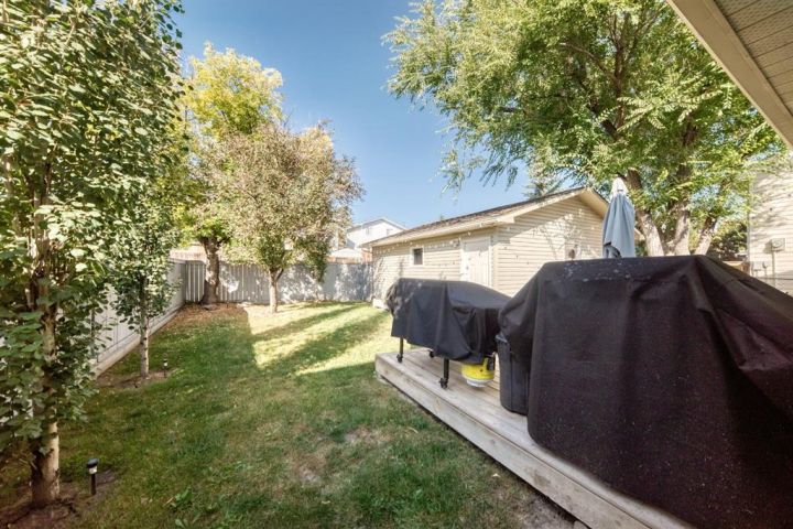 Welcome to this beautifully updated 5-bedroom bungalow, offering over 2500sqft of living space, ideally located in the heart of Woodbine! From the moment you arrive, you’ll be charmed by the impressive curb appeal and the mature, tree-lined boulevard — nature right at your doorstep & provides great privacy! AC & an upgraded HEPA filtration system have been added for your comfort! The main level features a bright, open-concept living and dining area with vaulted ceilings, hardwood floors and restored 1920s copper vent covers — a unique and elegant touch. The central kitchen is complete with granite counters, maple cabinets and stainless steel appliances. The cozy family room is anchored by a wood-burning fireplace and French doors opening to your back deck and backyard — perfect for entertaining or relaxing outdoors. The spacious primary suite includes a stunning 3pcs ensuite with a glass surround, multi head, spa-like shower. Two additional bedrooms and a stylish 4-piece bathroom complete the main floor. The fully developed basement offers two more large bedrooms with new egress windows, a massive rec room, a 3-piece bath, an updated laundry area and loads of storage space. Outside, enjoy a fully fenced backyard with a dedicated BBQ area, ideal for family gatherings or quiet evenings. The double detached garage is easily accessible and offers great convenience. Located just minutes from Costco & other shopping, local schools, Fish Creek Park and quick access to Stoney Trail and the mountains. This home combines comfort, style, and unbeatable location. Come check it out!