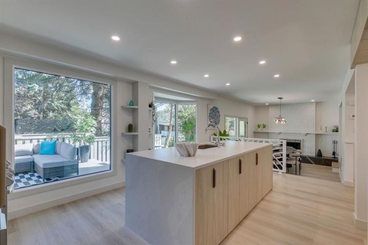 Welcome to this one of a kind, fully reimagined home in the heart of Canyon Meadows that's nestled on a quiet, family friendly cul-de-sac just steps from EP Scarlett High School. Virtually rebuilt from the studs up, this stunning property feels like a brand new home, masterfully blending high-end materials and modern design with practical family living. Showcasing exceptional curb appeal, you're welcomed by a charming front porch and into a spacious foyer with luxury vinyl flooring that flows throughout the main and upper levels. Step into a grand front living room flooded with natural light from a bay window, complemented by a custom built-in media wall that adds both style and function. The adjacent dining area offers the perfect setting for family meals and entertaining, complete with a cozy wood burning fireplace and glass doors that lead to your multi-tiered backyard deck that's ideal for alfresco dining and evening relaxation. The show stopping kitchen is a true focal point, designed to inspire any home chef with a massive centre island with breakfast bar seating, luxurious matte quartz countertops, sleek glossy cabinetry, and a premium brand new appliance package. Whether hosting or meal prepping, this space is as beautiful as it is functional. A bright, versatile den is located just off the kitchen and is perfect as a home office, or reading nook, with its own sliding glass door for privacy. Upstairs, you'll find four spacious bedrooms including a luxurious primary retreat that truly feels like a private sanctuary. The primary suite features a custom walk-in closet and steps down into a 5pc ensuite complete with a stone soaker tub, skylight, and glass-enclosed his & her shower for a space that rivals the best boutique hotels. An updated 5pc main bathroom serves the remaining bedrooms, offering space and style for the entire family. The professionally developed lower level is designed for comfort and flexibility, featuring a large family/games room with another custom media wall and storage, a fifth bedroom ideal for guests or teens, a stylish 3pc bathroom, and a huge laundry/storage room with ample space for seasonal items and gear. Additional upgrades include new triple pane Lux windows and doors, modern lighting, designer finishes, and thoughtful touches throughout. The private fenced backyard is a peaceful retreat with mature trees, landscaping, and plenty of space for kids and pets to play. Situated in a vibrant, established community known for its parks, pathways, excellent schools, and proximity to Fish Creek Park, this home is a rare opportunity to move right into a newly renovated masterpiece with room for your family to grow. Every detail has been meticulously curated, just unpack and enjoy.