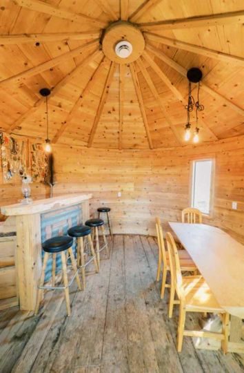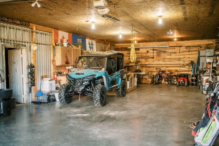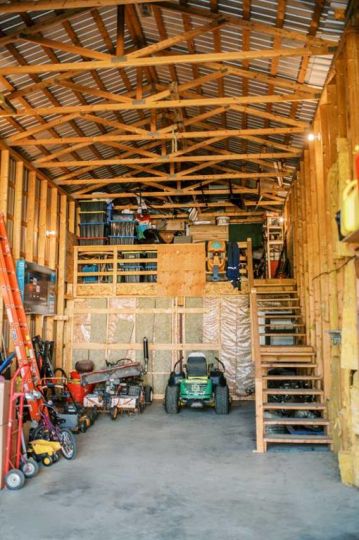 Greenhouse, garden shed, custom built grain bin bar, wood burning stove in basement, wood burning stove in shop, free standing pool, dog run, wood working benches