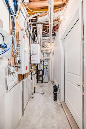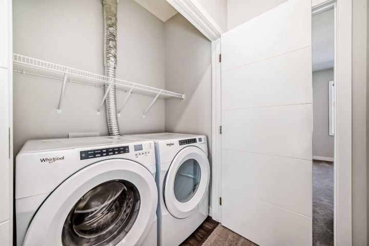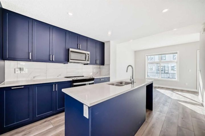 LIKE NEW but NO GST! Front GARAGE with ground floor utility area developed into OFFICE at the back with ground level WALKOUT to fenced 'no maintenance' patio/ back yard. IDEAL FOR INDEPENDENT SINGLES (2 Ensuites). Lovely contrasting plank flooring, quartz counter tops, triple glazed windows, tankless hot water, natural gas barbecue hookup and many more extras. Includes all appliances (upgraded fridge and stove) as viewed, including wall SAFE, and convenient CODED front door locking system. Solar panels, R/I for EV and AC. North edge location backing onto complex perimeter fencing and 2 doors down from GUEST parking. Includes access to fitness center in the apartment block. A Jayman project at its finest. NOTE: Townhome has front and back walk-in doors with ground floor OFFICE.. Handy to Quarry Park and is part of the established Douglas Dale community. NEW condition yet no GST on purchase. To view is to buy!!!