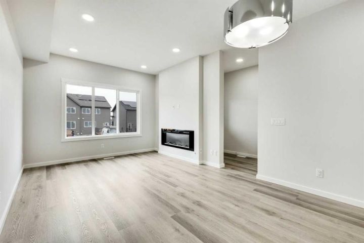 This stunning home combines style, functionality, and smart living. A separate side entrance offers direct basement access for potential future development or private use while a main floor bedroom and full bathroom provide convenience. The 9’ basement foundation, elegant metal spindle railing, and added windows create a bright, spacious feel. The kitchen features a chimney hood fan, ceiling-height cabinetry, and soft-close doors and drawers, complemented by premium finishes like a fireplace, knockdown ceilings, and a frosted pantry door. The ensuite and bathrooms include dual undermount sinks, and a concrete garage pad with curb walls is ready for a future garage. Plus, enjoy Smart Home Technology with thermostat, video doorbell, and front door lock—at no extra cost. Located in the vibrant Heartwood community of SE Calgary, you’ll love being steps away from the Seton YMCA, South Health Campus Hospital, and premier shopping, with unmatched convenience right at your door.