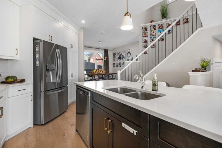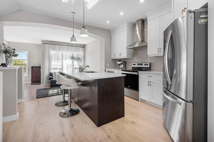 OPEN HOUSE SATURDAY OCTOBER 4TH 11am-1pm!!! EXTREMELY UNIQUE BROOKFIELD BUILD - BELVEDERE MODEL - TONS OF UPGRADES. Welcome to this exceptional, extremely unique Brookfield built, sought after belvedere model home located right across from a proposed new school, many major bus routes and in the heart of one of Calgary’s newest and most updated communities—Livingston. This beautiful two-storey home is packed with charm and premium upgrades, featuring a thoughtfully designed main floor layout, that showcases a sunken living room and an elegant curved staircase tucked toward the back of the home with dual skylights above, soaring ceilings, a builder upgraded flush-mounted sprinkler fire suppression system, a luxurious lighting package, and premium vinyl plank flooring throughout. The spacious living room is soaked in natural sunlight and anchored by a sleek electric fireplace, creating a cozy yet modern ambiance. Just a few steps up, the elevated kitchen and dining area offers a sense of separation and sophistication, featuring all stainless steel appliances, recessed pot lighting, full-height premium cabinetry, and a large central island perfect for family meals or entertaining guests. From the dining area, step out into your own serene, backyard oasis, complete with covered seating under a charming gazebo—the ideal spot for relaxing on warm evenings or hosting unforgettable family gatherings. Back inside, head upstairs on your featured curved staircase to find your personal retreat in the large primary suite, which offers a spacious five-piece ensuite with a full standing glass-door shower, separate soaking tub, large vanity, and a walk-in closet that ticks all the boxes. Just off the primary suite, enjoy your morning coffee or unwind at the end of the day on your oversized private balcony, soaking in the peaceful views of your quiet, family-friendly neighbourhood in total comfort and privacy. Across the upper level, you’ll find two more generously sized bedrooms that share another full four-piece bathroom, making this layout ideal for a growing family, guest space, or a convenient home office or hobby room. Downstairs, the basement offers a blank canvas with bathroom rough-in and two large windows, giving you the freedom to create your dream space—whether it’s a home gym, media room, kids’ play area, or future development. With this many premium features, smart design choices, and a layout full of unique charm and character, this home is everything you’ve been waiting for and more—book your private viewing today and see what makes it so special!