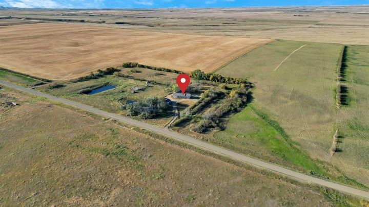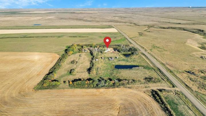 Welcome to your own private piece of paradise just minutes from Hanna. Set on 7 acres with trees, open green space, and prairie views, this bi-level bungalow offers the perfect mix of country charm, privacy, and modern comfort. Surrounded by wide-open skies and wildlife, this spacious home features 5 bedrooms and 3 bathrooms, making it ideal for families or anyone seeking a private retreat. Inside, a grand open foyer with ample storage leads to a bright, open-concept kitchen designed for family gatherings and entertaining. The dining area, complete with a custom table included with the home, flows seamlessly into the spacious living room. Expansive bay windows overlook the prairies, and a cozy double-sided fireplace creates warmth and character throughout. The main level hosts three large bedrooms, including a primary suite, alongside a fully renovated spa-style bathroom with dual sinks and a jetted tub. The lower level is built for relaxation and fun, with a generous rec room, two additional bedrooms, a full bathroom, and even a pool table that stays with the home. Outside, the property features an oversized double attached garage, a second detached workshop/garage with its own entrance, and a dedicated work area. With plenty of open yard space and natural surroundings, this acreage offers endless potential for hobbies, gatherings, or even livestock. Whether you’re seeking a family homestead or a quiet getaway, this property delivers space, comfort, and authentic Alberta living.