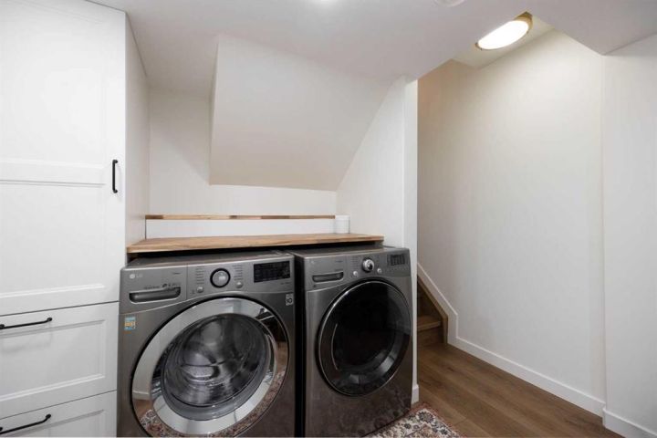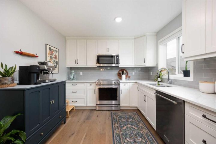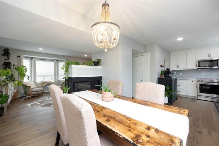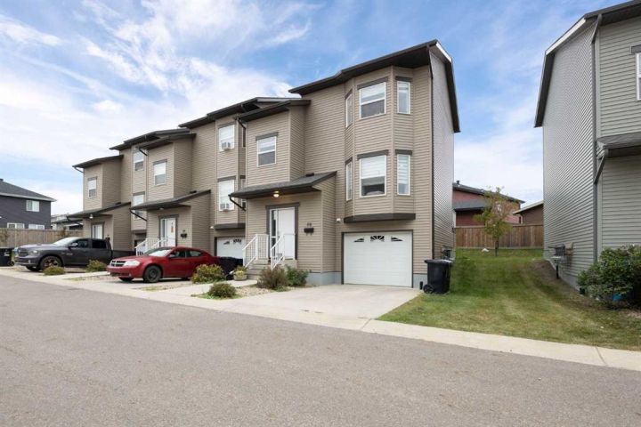 Welcome to this beautifully finished townhome located in one of Fort McMurray’s most desirable areas, just steps from the Thickwood Golf Course. Thoughtfully designed and move-in ready, this home combines modern finishes with timeless character, offering both comfort and functionality. Inside, you are greeted by a warm and inviting main level showcasing oak hardwood floors and a bright, open-concept layout. The living and dining areas flow seamlessly into the show-stopping kitchen, designed with a Joanna Gaines–inspired style. Here you’ll find ceiling-height cabinetry, quartz countertops, a full pantry, and plenty of space for both cooking and entertaining. Just off the main living area, there is access to the deck complete with a gas line for your BBQ, making outdoor gatherings effortless. A convenient half bath completes this level. Upstairs, there are two generously sized bedrooms, each featuring its own private en-suite bathroom. Both bedrooms come equipped with darkening shades discreetly installed behind the blinds, providing comfort and privacy. The fully developed basement expands your living space and offers incredible flexibility. Finished with durable oak vinyl plank flooring and custom shelving, it is currently being used as a recreation room but could easily serve as a third bedroom if needed. The basement also houses the laundry area with custom cabinetry, adding both style and practicality to your everyday routine. Additional updates include fresh paint throughout the entire home, giving every space a clean and modern feel. With its prime location near the golf course, walking trails, and all the amenities of Thickwood, this home truly has it all: style, location, and thoughtful upgrades throughout. Don’t miss your opportunity to make this beautiful property your new home!