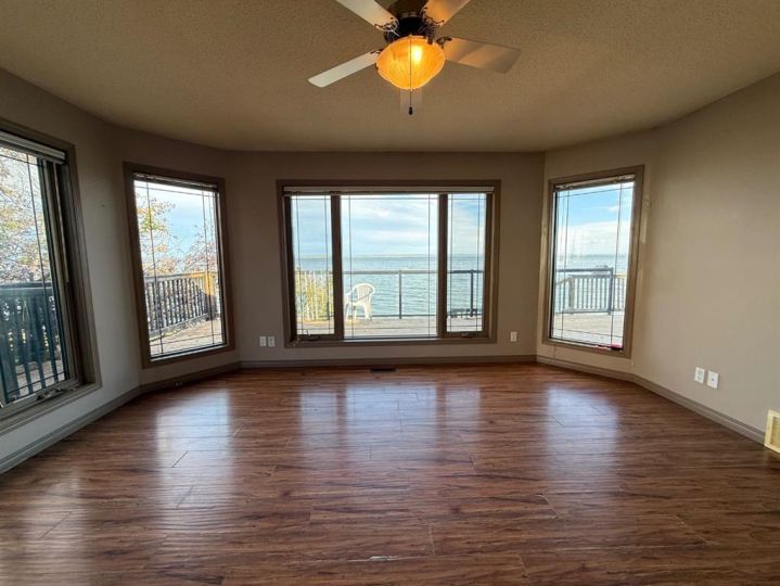 A cottage in Joussard, Alberta, inviting you to enjoy a year-round lakefront lifestyle. This 2009-built home is perfectly designed for lakeside living, offering both comfort and incredible functionality. The main house features three bedrooms and two bathrooms, but the standout feature is the expansive, heated 28' x 40' garage. This incredible space includes a versatile bonus bedroom and bathroom, accessible through French doors to its own fenced, private yard with direct access to the lake—ideal for guests, extended family, or a home business. With room for a pontoon boat or RV, the garage is a dream come true for outdoor enthusiasts. A multi-level, wrap-around deck with glass panels provides breathtaking views of the lake, with stairs leading down to a rocky/sandy beach. The yard is thoughtfully laid out with multiple fenced areas, including the one connected to the garage bedroom for ultimate privacy, and another east-facing fenced yard wrapping around to the front of the home. Enjoy the multiple raised south-facing gardens placed strategically around the driveway and front of the home. Inside, the home is oriented to maximize the stunning lake views. An east-facing entrance serves as a practical mudroom with a stacking washer/dryer, while the sunroom, living room, and open-concept kitchen/dining area all overlook the water. The living room is warmed by a gas fireplace and features custom bookshelves, creating a cozy atmosphere. The primary bedroom is , complete with a walk-in closet and an ensuite boasting a soaking tub and a stand-up shower. To book your personalized viewing call, email or text your Realtor today!