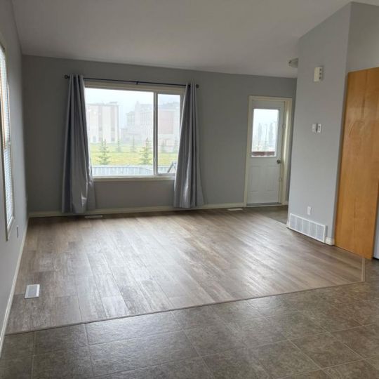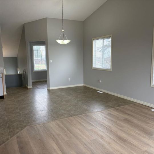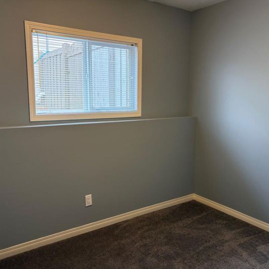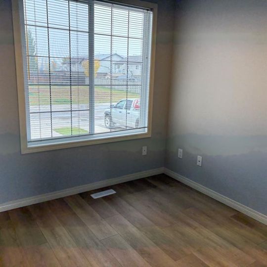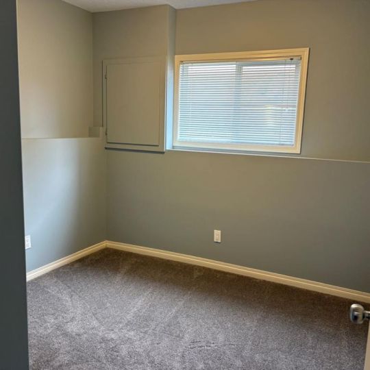 Move-in ready and with some fresh updates! This half-duplex offers fresh modern paint, vaulted ceilings and an open-concept main floor that feels bright and spacious. The kitchen features new countertops, while the living area with dinning room and living room flows into a small versatile den/office at the front and a convenient half bath and laundry at the back door. Living room features new flooring. The back door leads to the fully fenced yard with deck and storage shed—perfect for enjoying outdoor space. The lower level includes three bedrooms, a full bath, providing privacy and functionality. With fresh paint and immediate possession available, this side is ideal for an owner-occupant or as part of an investment portfolio. The adjoining unit is also for sale so fantastic opportunity for an investment portfolio.