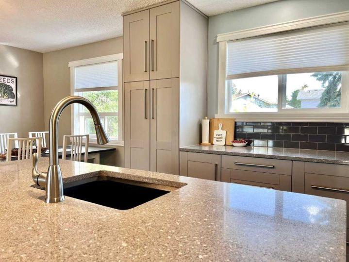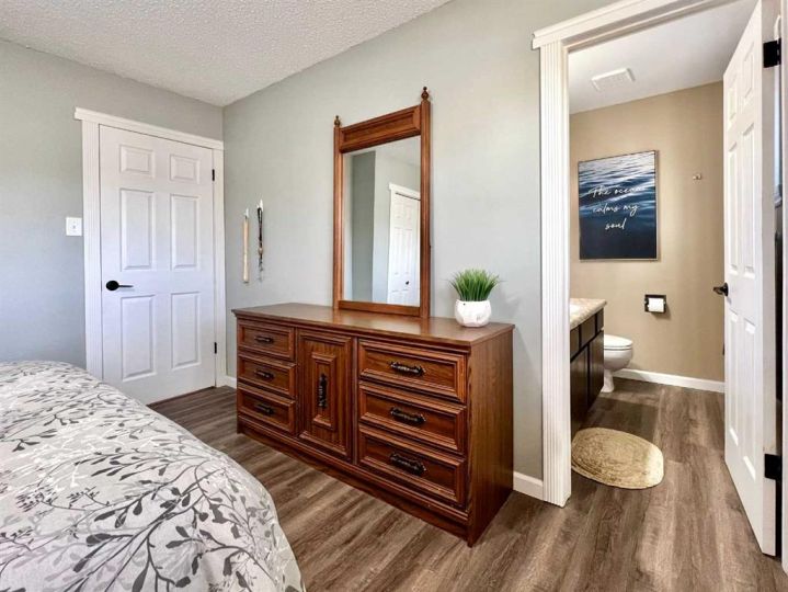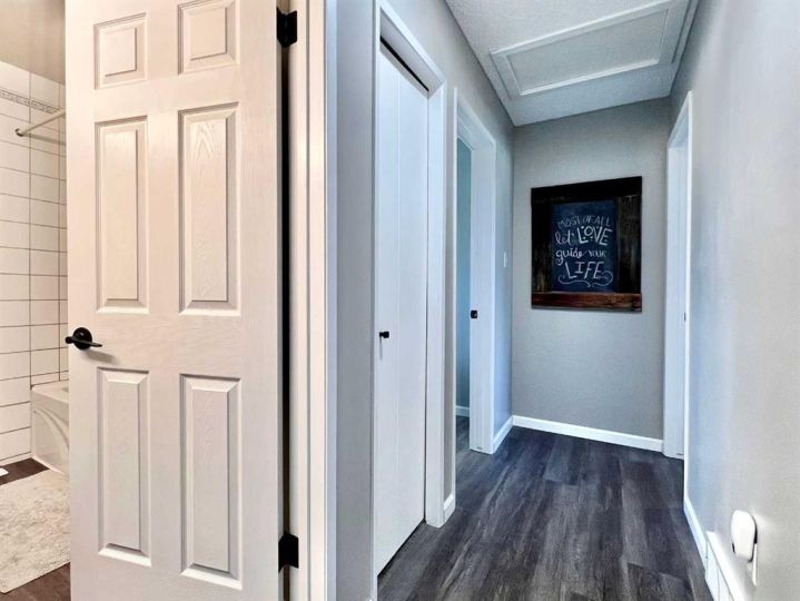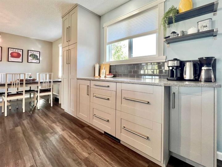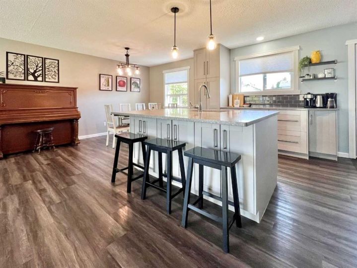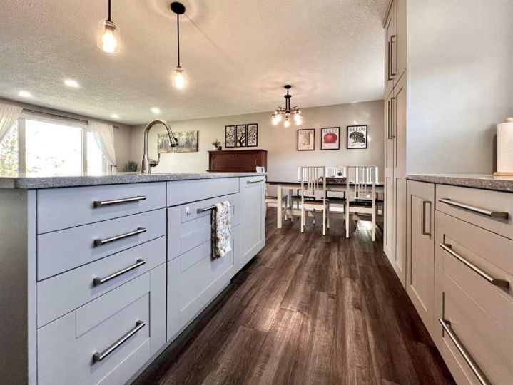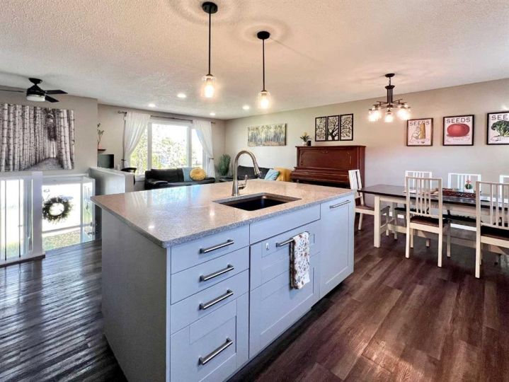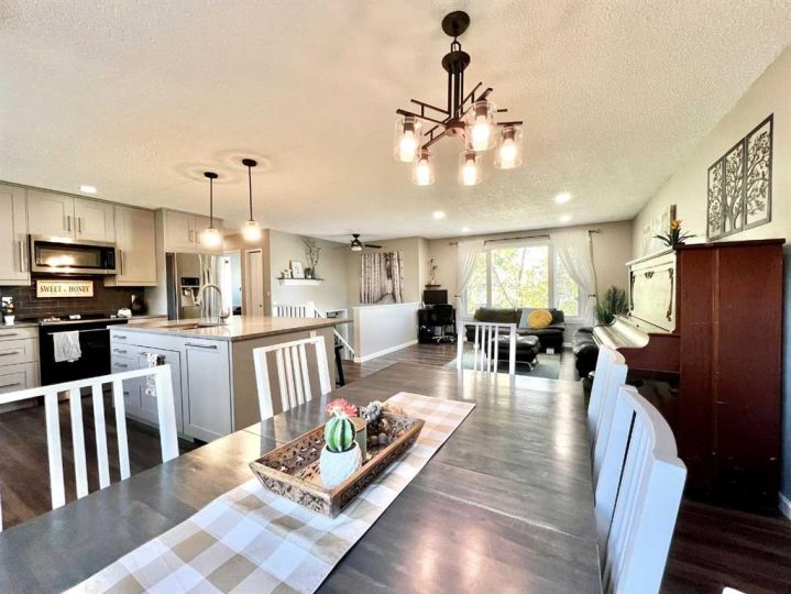 Welcome to Beaverlodge! A friendly, small-town community just 20 minutes west of Grande Prairie, where neighbours wave, kids ride their bikes down the street, and you can enjoy the pace of country living with the convenience of the city close by. This completely updated bi-level home has been designed for both comfort and function, offering 5 bedrooms, 2.5 bathrooms, and an oversized driveway with gated access to the backyard for RV parking. With newer siding and updated windows, the curb appeal is fresh and modern while also adding energy efficiency and peace of mind. Step inside and you’ll be greeted by an open, light-filled main level with large windows and a spacious layout. The dining room flows easily into the updated kitchen, featuring quartz countertops, an eat-at island, and stainless steel appliances. From here, step out onto the back deck and enjoy the large fenced yard - perfectly set up for busy families complete with raised garden beds, two storage sheds, and even a play structure. Down the hall, you’ll find two spare bedrooms, a stylishly updated bathroom with subway-tile shower and brand-new vanity, plus a primary suite with its own private 2-piece ensuite. The lower level is just as impressive, with a large rec room perfect for movie nights or games, two oversized bedrooms ideal for teens or guests, a full bathroom, and a spacious utility/laundry room. To top it off, brand-new asphalt shingles mean this big-ticket updates is already done for you. If you’ve been searching for a move-in ready home in a close-knit community... with the space, updates, and yard you’ve been dreaming of: this might be the perfect fit. Call your favourite agent today to book your private showing!