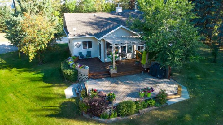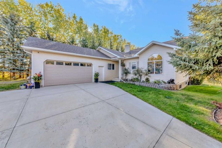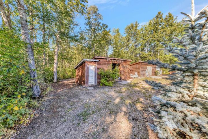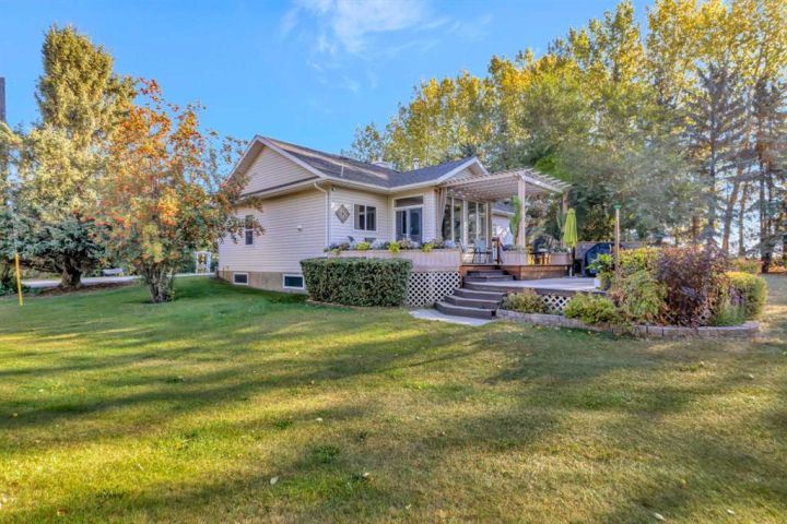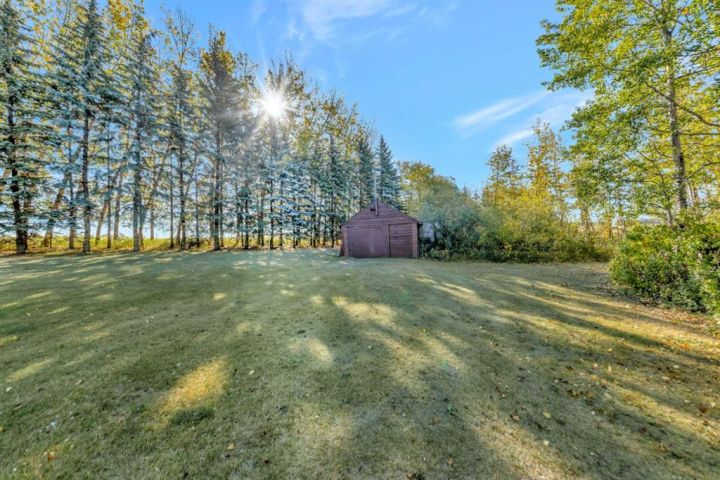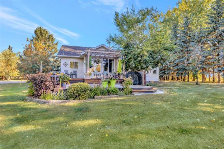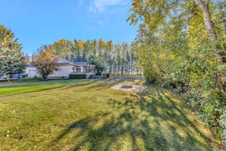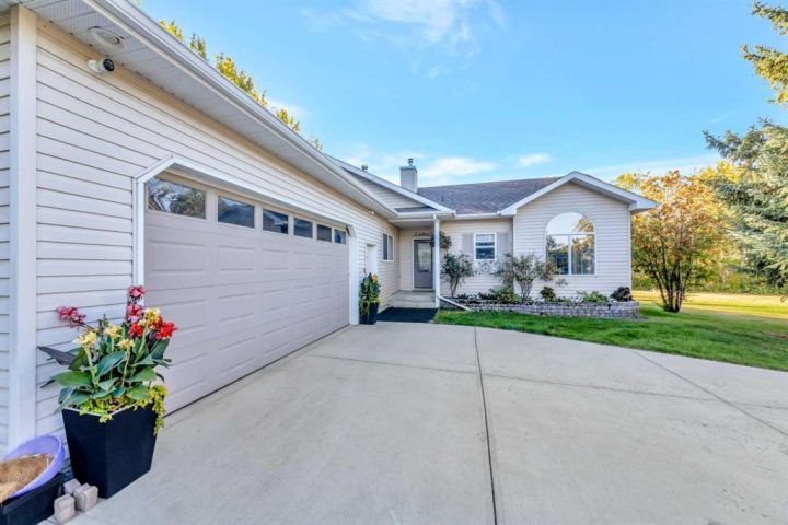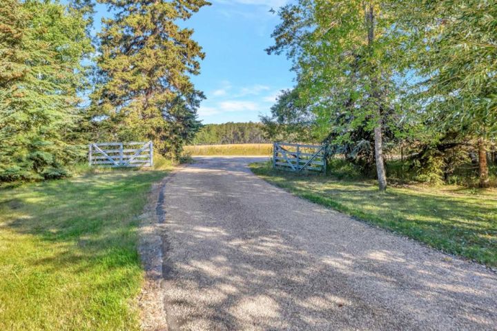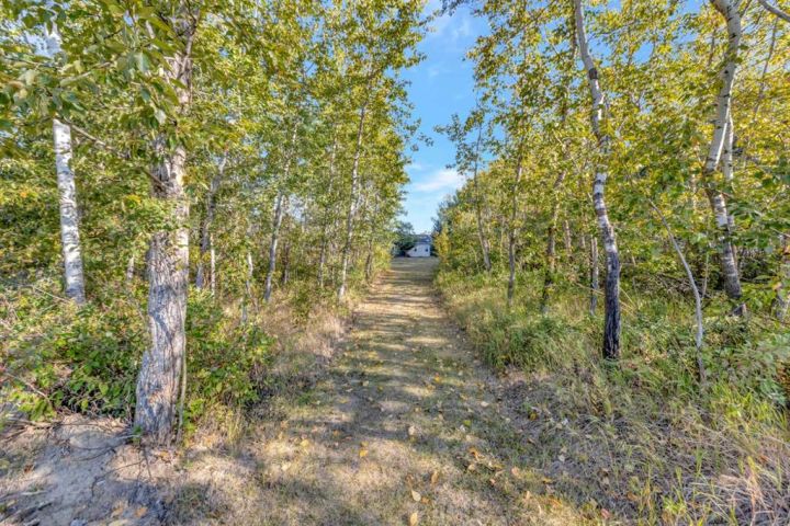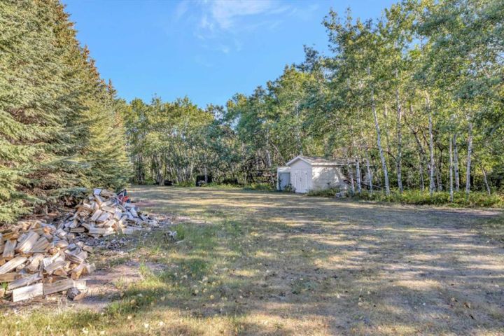 Nestled amongst mature trees, this beautiful 2004 bungalow sits on a total of 4.8 acres just 3 minutes from Sandy Beach and only 20 minutes from the City of Lloydminster. The home’s welcoming entrance leads you into the open floor plan. Attractive and recently refinished hardwood floors feature throughout the main floor living area. The large South facing windows bring natural light into the space and highlight the stunning views of the outdoors. Family and guests can sit at the eat-up kitchen peninsula, gaze out at the gorgeous green space from the dining room or, they can put their feet up in the living room in front of the wood fireplace that is accented by beautiful stone work. The primary bedroom is a comfortable retreat with a large 3-pc ensuite bathroom and walk-in closet. The main floor also has a second bedroom, which is currently set up as an office with a murphy bed. There is a conveniently located 4-piece bathroom and a laundry room with garage access also on the main level. The basement is fully finished. It boasts a fantastic family room with a wood stove, 2 more generous bedrooms, a second kitchen with eating area, a 4-piece bathroom, storage areas and a cold storage room. The outdoor space is spectacular with two-tiered back deck, raised garden beds, fire pit area, lawn space, hedges and trees. You will appreciate taking nature walks on your own property. There is a double attached insulated garage with concrete parking pad and a double detached garage with attached workshop (wood heat). Plus, there are several sheds (with power) on the property for your garden tractors, quads, firewood and tools. There is a cleared area well away from the house that has plenty of room for RVs, trailers, boats and small equipment. Other features of this property include: central vacuum, gutter guards with transferable warranty, two natural gas hook ups on the deck for the bbq, security camera, Starlink and Shaw dish. Water is from a well. Septic is a tank and field. Gutters are set up to drain in barrels. There is a small dugout on the property with plumbing to water trees from the dugout. Call to view this outstanding acreage!