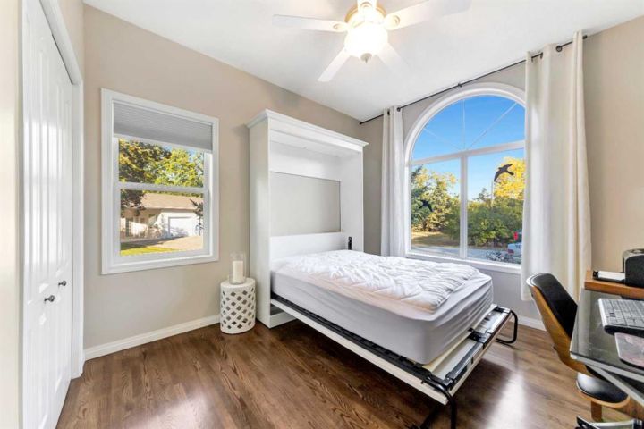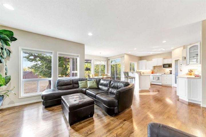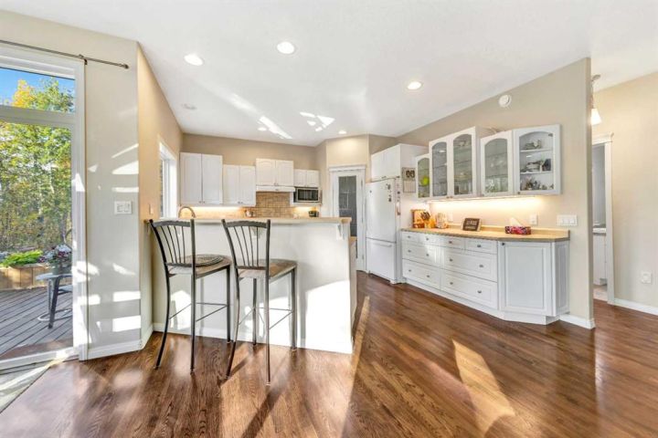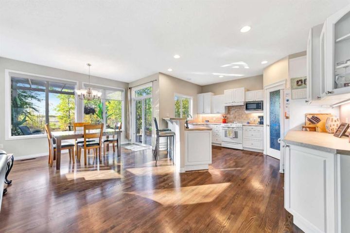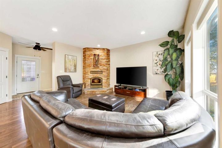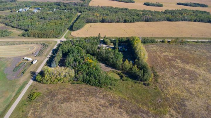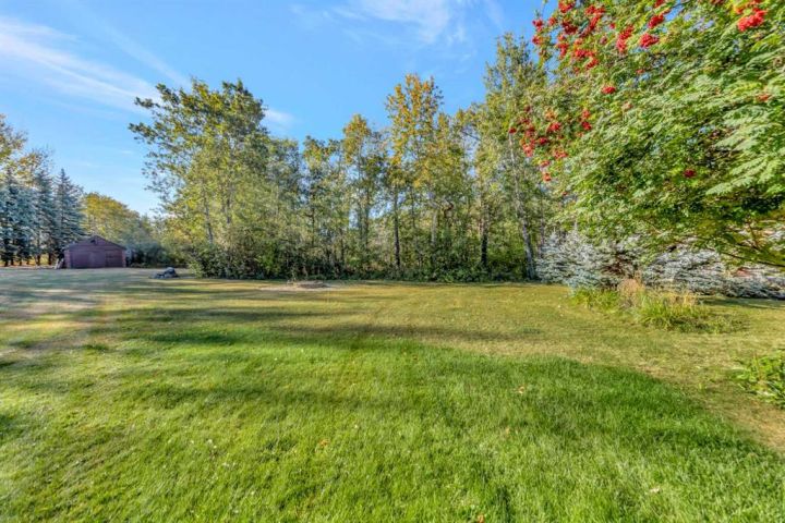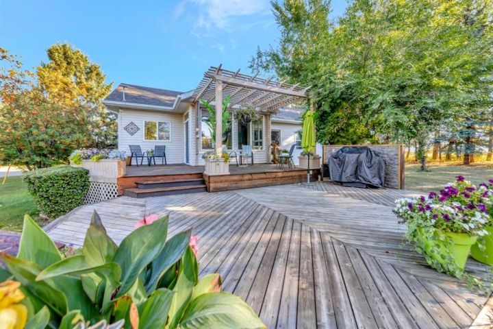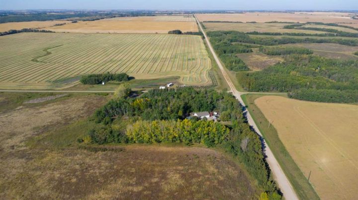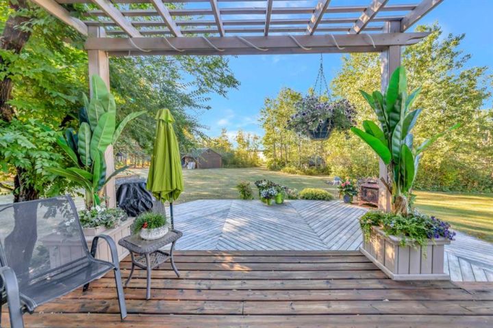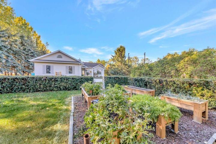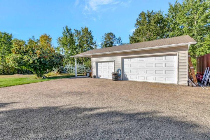 Nestled amongst mature trees, this beautiful 2004 bungalow sits on a total of 4.8 acres just 3 minutes from Sandy Beach and only 20 minutes from the City of Lloydminster. The home’s welcoming entrance leads you into the open floor plan. Attractive and recently refinished hardwood floors feature throughout the main floor living area. The large South facing windows bring natural light into the space and highlight the stunning views of the outdoors. Family and guests can sit at the eat-up kitchen peninsula, gaze out at the gorgeous green space from the dining room or, they can put their feet up in the living room in front of the wood fireplace that is accented by beautiful stone work. The primary bedroom is a comfortable retreat with a large 3-pc ensuite bathroom and walk-in closet. The main floor also has a second bedroom, which is currently set up as an office with a murphy bed. There is a conveniently located 4-piece bathroom and a laundry room with garage access also on the main level. The basement is fully finished. It boasts a fantastic family room with a wood stove, 2 more generous bedrooms, a second kitchen with eating area, a 4-piece bathroom, storage areas and a cold storage room. The outdoor space is spectacular with two-tiered back deck, raised garden beds, fire pit area, lawn space, hedges and trees. You will appreciate taking nature walks on your own property. There is a double attached insulated garage with concrete parking pad and a double detached garage with attached workshop (wood heat). Plus, there are several sheds (with power) on the property for your garden tractors, quads, firewood and tools. There is a cleared area well away from the house that has plenty of room for RVs, trailers, boats and small equipment. Other features of this property include: central vacuum, gutter guards with transferable warranty, two natural gas hook ups on the deck for the bbq, security camera, Starlink and Shaw dish. Water is from a well. Septic is a tank and field. Gutters are set up to drain in barrels. There is a small dugout on the property with plumbing to water trees from the dugout. Call to view this outstanding acreage!