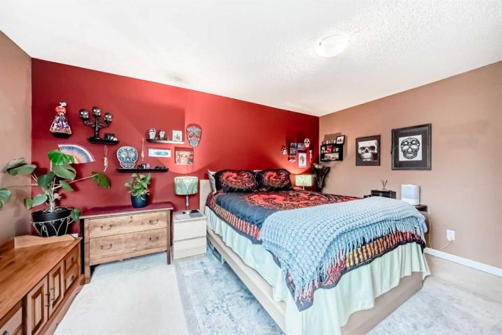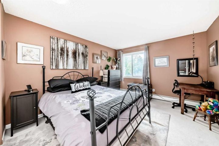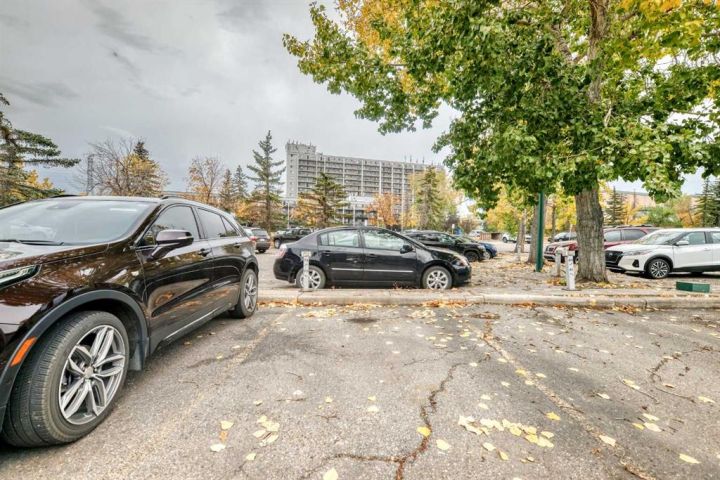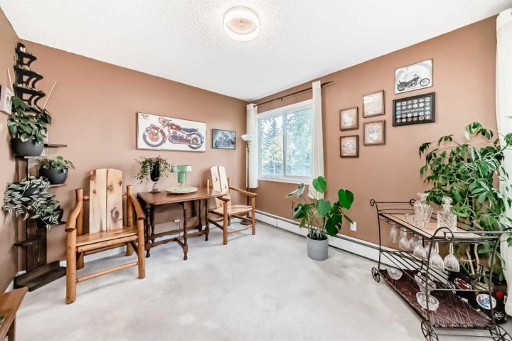 This home is in a tremendous location, close to all amenities including Signal Hill Centre with Superstore, drug stores, Winners, Michaels, restaurants, a theatre, and convenient public transportation. It is only minutes from Sarcee and Stoney Trail, providing quick access throughout the city. Rare to find a Corner condo that offers over 1080 square feet for this price. Unit is well-cared-for and overlooks a beautiful treed park, creating a private and inviting setting . The large foyer provides plenty of space for shoes, coats, and guests to comfortably arrive. Inside, there is a generous storage room measuring four by nine feet, offering an abundance of extra space. The four-piece bathroom features a spacious counter and built-in laundry facilities with additional cabinets above the washer and dryer for storage. The kitchen is impressive with ample cabinetry and counter space, accented with white appliances. The L-shaped living and dining area offers plenty of room for a large table and extra space in the living room with a wood burning fireplace as accent. A sliding patio door opens to a large, covered deck with park views. The master bedroom is exceptionally spacious, complete with a walk-in closet, room for a sitting area, and numerous west-facing windows that fill the space with natural light. A second large bedroom is ideal for guests or a home office. An assigned parking stall, number 79W, is included. This building has seen many recent updates and planned improvements, including updated windows, scheduled painting of Building 60 in May 2026, new carpet in the common area this month, replacement of makeup air units in 2025, and fibre-optic network service being added this year. This condo offers exceptional value with its size, layout, and location. It is truly a property you will want to see.