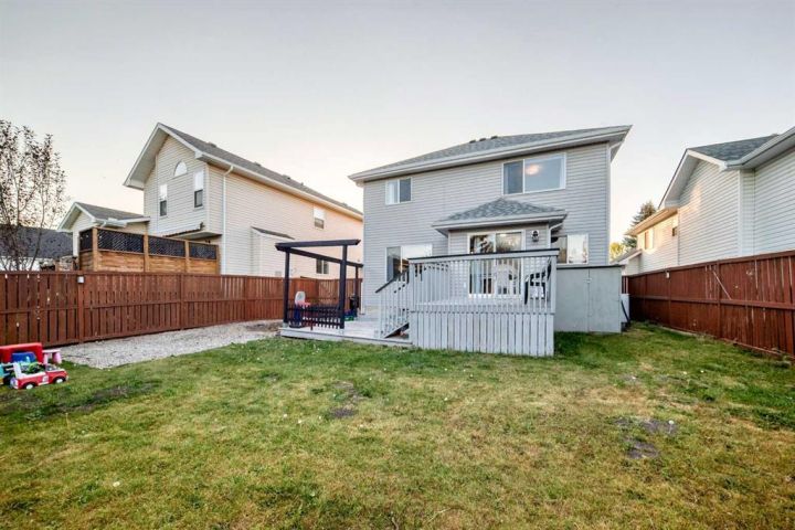 AWESOME LAKE LOCATION !!8 minute walk to Chaparral lake 6 minute walk to Saint Sebastian elementary.3 minute walk to soccer field/green space with a playground in front of house. Fully developed 3+1 bdrm 1600 sq ft 2 storey with double attached garage.Comes with wall mounted 75 inch Hisense TV ,New washer dryer and microwave and central air conditioning,3.5 bathrooms,large rec room ,natural gas fireplace,hardwood floors.Backyard has multilevel deck and storage shed and nice yard perfect for growing family