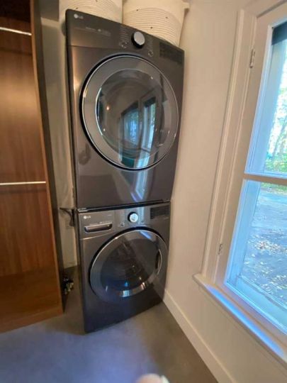 Dishwasher, Gas Stove, Microwave, Refrigerator, Washer/Dryer Stacked, Window Coverings