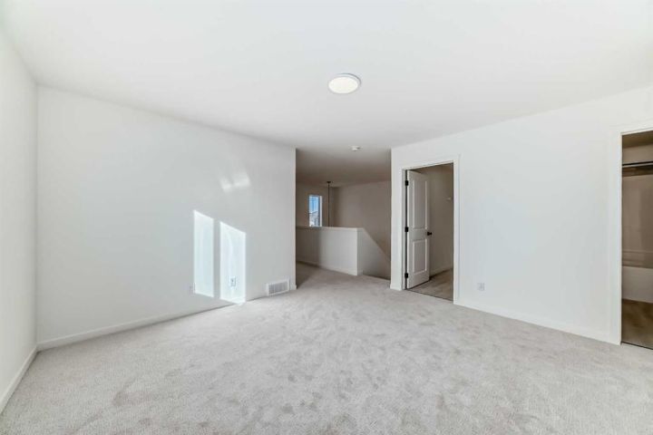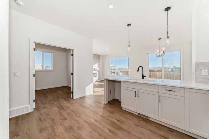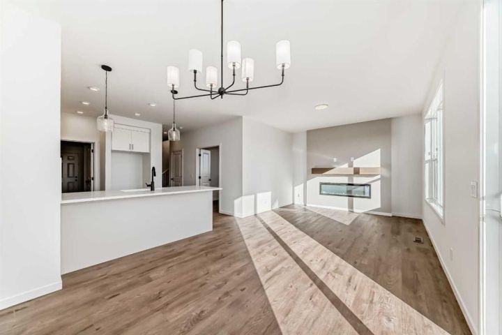 Welcome to 81 Southborough Square, a beautifully designed Daytona Homes residence located in the scenic town of Cochrane. Offering over 2,000 square feet of modern living space, this detached home blends elegance, function, and comfort in a way that is perfectly suited for today’s families. With a double attached garage, 3 bedrooms, 2.5 bathrooms, and an unfinished basement ready for your future vision, it is a home built to grow with you. The main floor is all about connection and convenience. Step in through the garage to find a practical mudroom that leads directly into the walk-through pantry, keeping your daily routines seamless. At the heart of the home is a striking U-shaped kitchen with a flush eating bar, designed for both style and efficiency. The kitchen flows effortlessly into the bright dining nook and spacious great room, complete with an electric fireplace that adds warmth and character to the space. Just off the kitchen, a generous den offers the perfect setting for a home office, study, or quiet retreat, while a stylish powder room completes the main floor. Upstairs, the thoughtful design continues. Two bedrooms are tucked at the back of the home, sharing a well-appointed 4-piece bathroom. A large central bonus room provides plenty of space for movie nights, playtime, or family gatherings, while the dedicated laundry room adds convenience to everyday living. At the front of the home, the primary retreat offers a true escape, featuring a luxurious 5-piece ensuite with dual sinks, a soaker tub, and a separate shower, along with a large walk-in closet. The unfinished basement is ready to be customized to your lifestyle, whether you envision a home gym, recreation space, or additional bedrooms. Living in Cochrane means enjoying small-town charm with quick access to Calgary and the Rocky Mountains. Trails, parks, and community amenities are right at your doorstep, making it easy to balance work, family, and recreation. With Daytona Homes’ signature craftsmanship and the beauty of Cochrane’s surroundings, 81 Southborough Square is more than just a home. It is a place where comfort, convenience, and community come together.