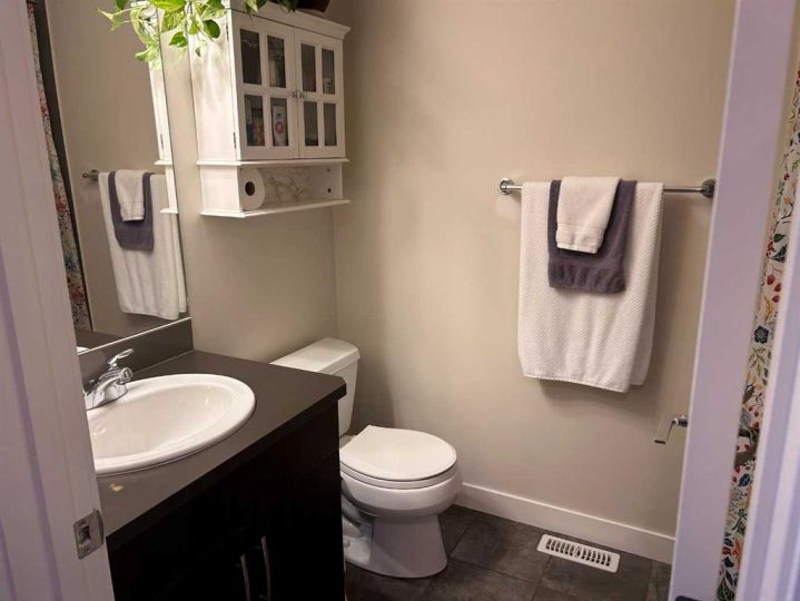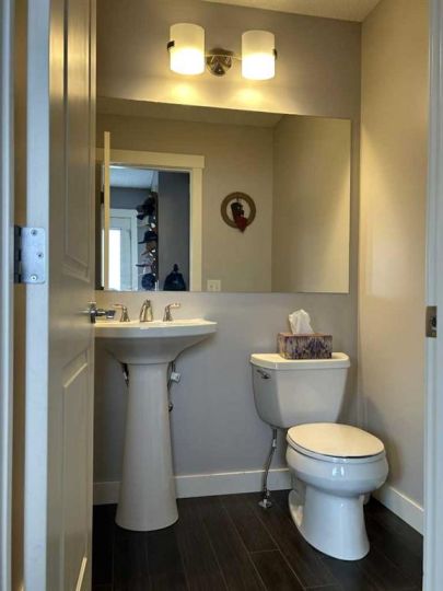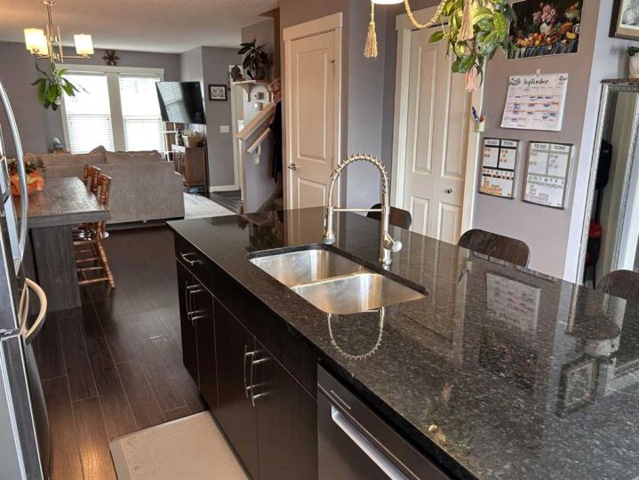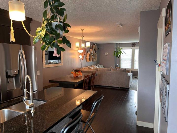 *OPEN HOUSE OCT 4: 2-4* Welcome to stylish townhome living nestled in the popular picturesque and family friendly area of Fireside. NO CONDO FEES! A superbly finished home with 3 bedrooms & 2 1/2 baths. Coming up the walk you're greeted by classical accented architecture and a gracious entrance. At night watch the house shine with programmable built in soffit lighting. Through the inviting foyer, there's an open concept main floor plan with quality laminate, ample windows & natural lighting. Spacious living and dining rooms with an open kitchen, great for day to day and entertaining. An offset private 1/2 bath on the main floor. Kitchen offers ample gorgeous cabinetry, large island, granite countertops, pantry, S/S appliances with updated DW & Fridge. Step out and relax on the custom deck with plenty of space to watch the kids play. Retreat upstairs to the private primary bedroom which features a walk-in closet and ensuite. Two more sizable bedrooms and a 2nd full bath complete the second floor. The unfinished lower level offers versatile functional space for say office, home gym, big screen, storage. Fenced yard with two rear stalls. Excellent location with Catholic and Public schools both K-8 within walking distance. The community offers 4 parks and pump track for families to explore, ample green spaces and walking paths with community gardens and fire pits. In the winter skate on the well maintained NHL sized outdoor rink. Steps to bistro, shops and services. Via Hwy 22 / Hwy 1 it’s a breeze to Calgary or off to the Rockies. Pride of ownership - a great opportunity - come and see!
