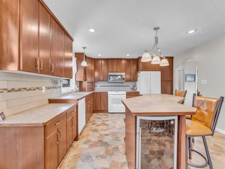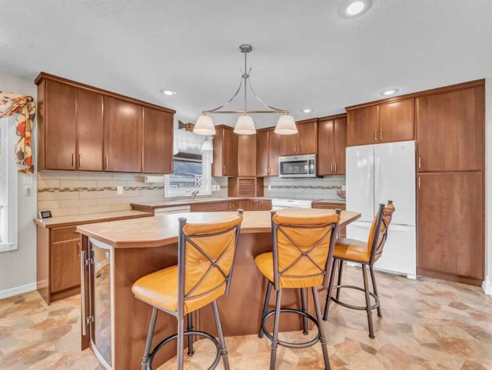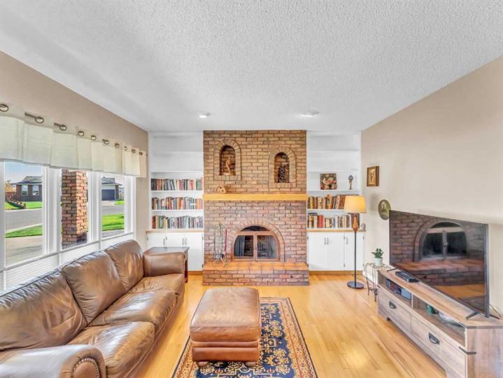 Pride of ownership is evident throughout this beautifully kept bungalow, ideally situated in a quiet, established neighborhood adjacent to scenic coulee trails. Enjoy the peaceful setting while still being minutes from parks, schools, shopping, and other amenities. As you step through the front door, you're greeted by a spacious, welcoming entryway that sets the tone for the entire home. Hardwood floors accent the large living room with oversized windows that flood the space with natural light. The main feature is a beautiful brick fireplace that has convenient built in shelving units on either side. The kitchen is impressively spacious and designed for both everyday living and entertaining, featuring a brand-new microwave and dishwasher, a large central island, complete with a wine fridge, and ample space to accommodate a full-sized dining table. The main floor offers three generously sized bedrooms, including a comfortable primary suite with a 3-piece ensuite bathroom. Convenient main floor laundry is located adjacent to a practical two-piece powder room near the back entry, ideal for busy households and guests. Downstairs, the fully developed basement provides even more space with a large den that can serve as an office, or craft room, along with an additional 3-piece bathroom. Outside, you'll appreciate the home's excellent curb appeal! The corner lot offers a large side yard with underground sprinklers, and a fenced back yard with shed and patio area. The oversized double-attached heated garage includes extra workshop space, perfect for hobbies, projects, or additional storage. There's also RV parking available! Additional upgrades include newer windows, air conditioning, added insulation, furnace (2023), HWT (2023), updated blinds, newer roof and more, all providing peace of mind for years to come. Move-in ready with so many thoughtful updates, this wonderful home offers an unbeatable combination of comfort, space, and location. Don’t miss your opportunity to make it yours!