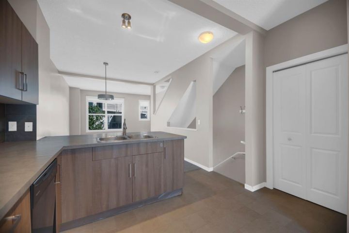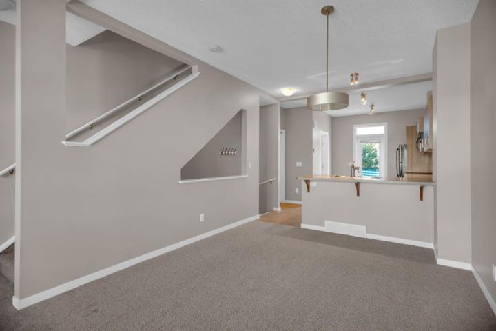 Welcome to 136 New Brighton Point, a lovely, move-in ready townhome in the community of New Brighton! This home has been professionally cleaned and new carpet installed throughout. The lower level serves as an entryway leading to the main floor living space. The bright and open concept main floor is welcoming, with a comfortable living room, eating area, and a large kitchen with ample counter and cabinet space. A half bath completes the main floor. From the kitchen, step on to the private deck with gas line for your BBQ. On the second level you will find 2 bedrooms each having a 4-pce ensuite! Ideal for a small family or roommates. For convenience, the stacked washer and dryer are located on the upper level! At the front there is access to the 2-car attached garage and carport, offering parking for two vehicles and plenty of storage. The utility room is in the garage. From the garage there is a walk-up to the ground level patio space. The New Brighton Residents Association offers a multitude activities, events and rental facilities. The 2025/2026 Home Owners Association fee is $271.69. This lovely community is close to parks, schools, shopping, and major roadways. See the virtual tour 3D tour and pictures. Call your favourite Realtor today to view this lovely townhouse today.