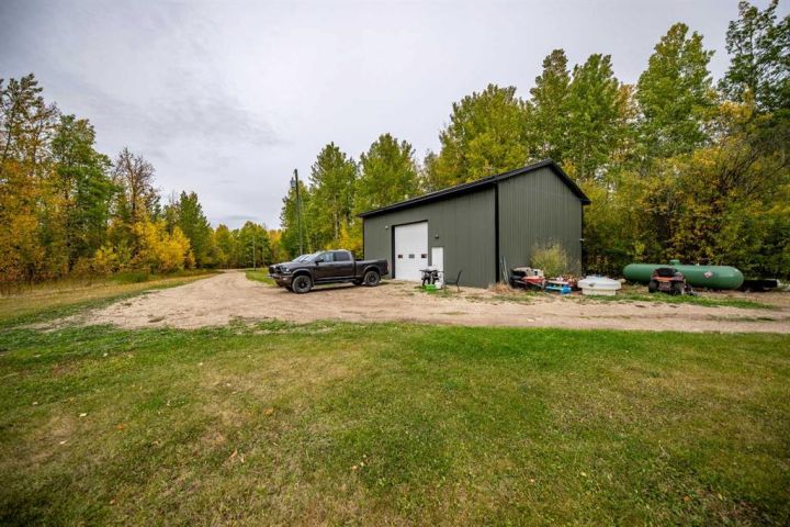 Peaceful 10.21-Acre Acreage with Home, Shop & Crown Land Access – Just 30 Minutes from Grande Prairie! Welcome to this beautifully treed property located in the quiet subdivision of **Aspen Grove**, just southwest of Grovedale and a convenient 30-minute drive from Grande Prairie. With paved road access all the way to the subdivision, this is an ideal opportunity for those seeking peaceful country living without sacrificing accessibility. The property features a charming 988 sq.ft. bungalow, built in 2017 and set on pilings with a 4-ft insulated crawl space for added storage and efficiency. This cozy home offers 2 bedrooms and 1 full bathroom as part of the master suite. Clean white kitchen with soft close drawers and vinyl plank floors. The exterior is low maintenance with vinyl siding, asphalt shingles, and PVC windows ensuring durability and year-round comfort. Step outside to enjoy your private backyard oasis, which backs onto a beautifully wooded area and a 50-acre crown land reserve, perfect for nature lovers, recreational use, or those craving privacy with no rear neighbors. The standout feature of this acreage is the 30' x 40' fully equipped shop with infloor heat, 200 amp service, 12' overhead door, 16' ceilings, 2 mezzazines, wood stove and structural slab. An ideal place for hobbyists, tradespeople, or anyone needing extra space. In addition to the main home and shop, the property includes a couple of older outbuildings that offer potential for renovation or can be removed to make way for a secondary dwelling or dream home build site. Services are already thoughtfully separated for multiple residences — including power, cisterns, and septic systems for each potential dwelling. The property is serviced with propane heat (2 leased tanks) and has ample space for animals, gardening, or future development. Whether you're looking for a comfortable starter acreage, a place to build your dream home, or a rural getaway with workshop space and crown land access, this property checks all the boxes.