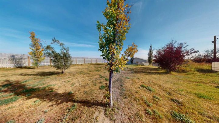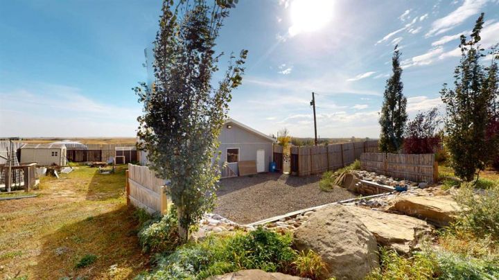 This Acreage has Plenty to offer. Privacy Fence and the home was moved from Calgary onto new foundation built by Heritage Concrete in 2019. Home has all new windows and original hard wood flooring, new siding. Newer Gas Stove in Kitchen. Secondary building with Heated Garage is a separate building with a suited living quarters built on Slab in 2019 and a fenced private yard. HEATED GARAGE: (17 '1" x 30'11") 553 sq ft. SUITE: 683 sq ft. There is a Privacy fencing with many gates on the North East and West side of property. The whole acreage can't be seen from main road as it gently sloped to give natural shelter from the wind. Nicely Treed and has a sound Berm on West/North end of property. Room for animals to be pastured. Services for Sewer, water and Electric beside main dwelling potential for large Garage or even a Shouse or Shop. Yard is gravelled and nicely designed for circle driveway ample parking and accessibility. Water Well produces 12 GPM. New Basement Foundation on Main House has 12 ft ceilings and roughed in plumbing for a kitchen and bathrooms. Basement is a blank slate for you to develop how you want and Raised Bungalow and high ceiling with lots of windows doesn't feel like a basement feels warm and cozy. Services for another building beside main house all in place. Two = Septic tanks perfect for multiple families. MAIN HOUSE with basement: 2145 sq ft of living space. Potential for basement suite with private access. Located just off pavement RR 253 and 30+ mins to Airport and Calgary. Nearest town Strathmore. 10x12 Greenhouse, 10 x 10 Gazebo, black shed 7.5x6, Shed 10.5 x 8. Virtual Tours x two on this listing, check out the 360 views and there is a button to de-furnish the rooms, garage and basement. What would you do with this property?